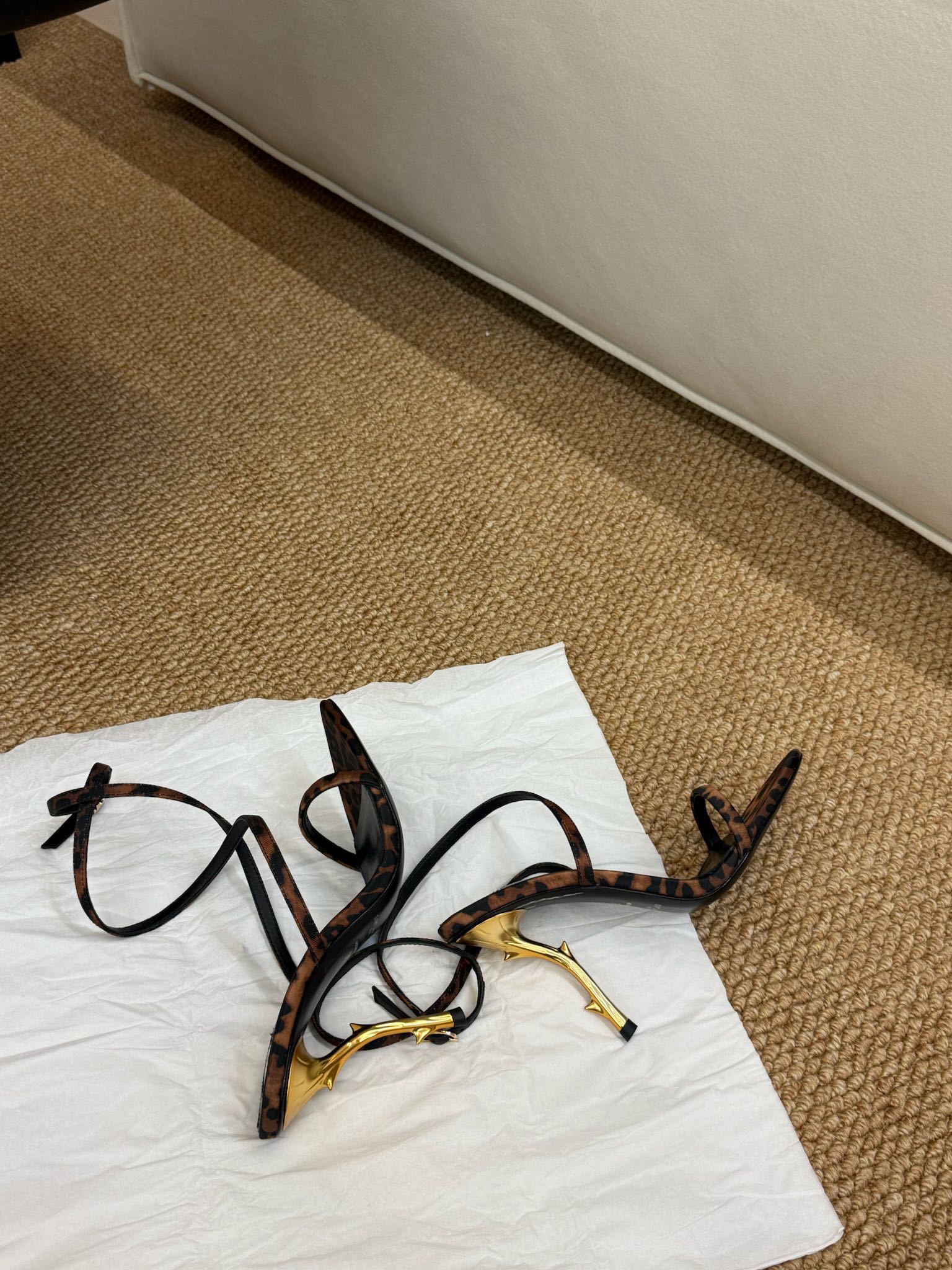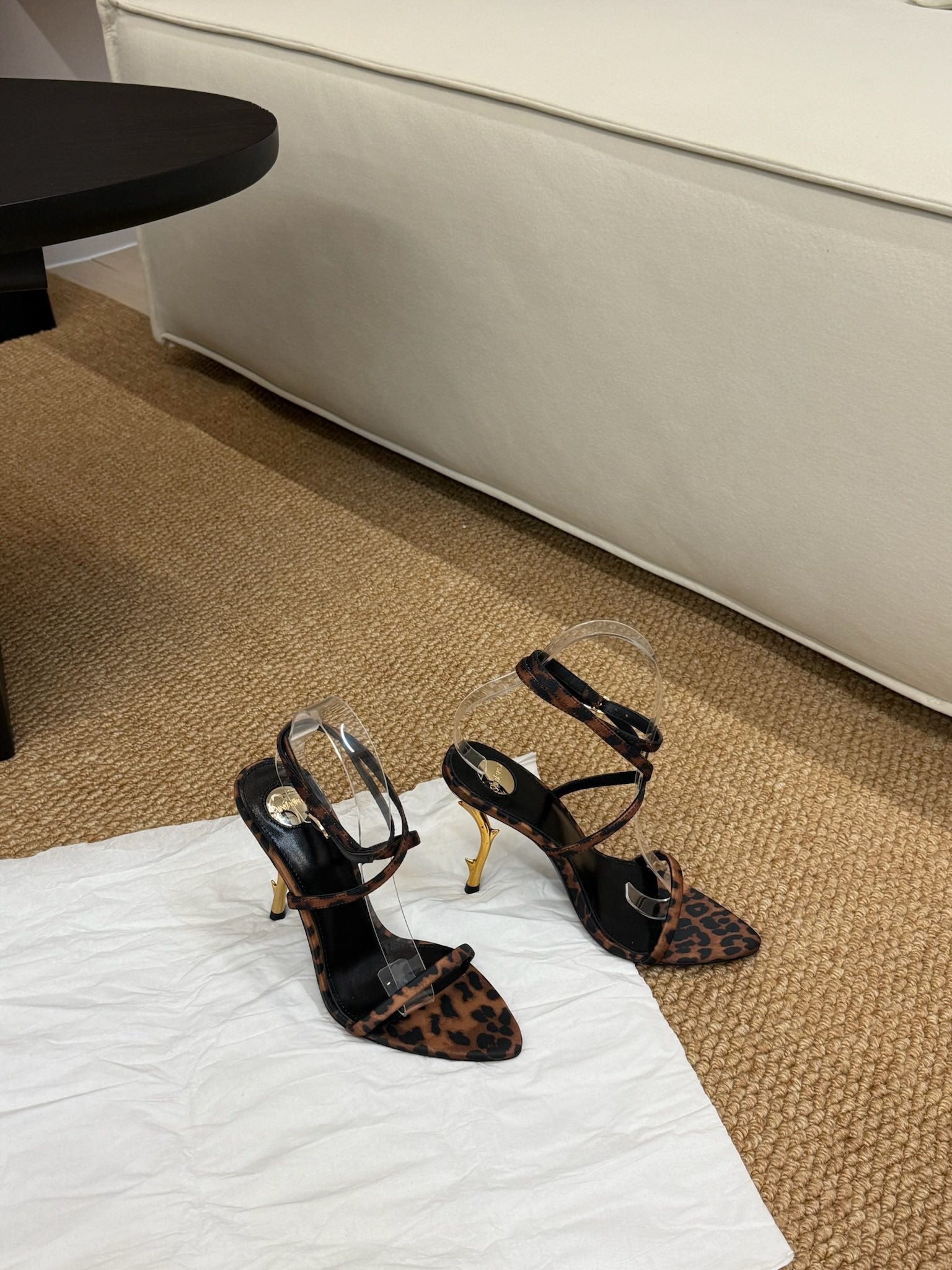 YSL HIGH HEEL SANDALS 25S IN LEOPARD PRINT LAMBSKIN