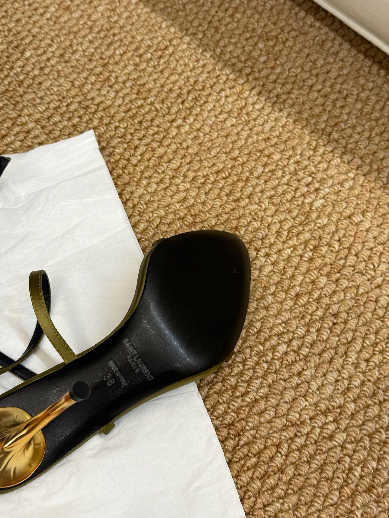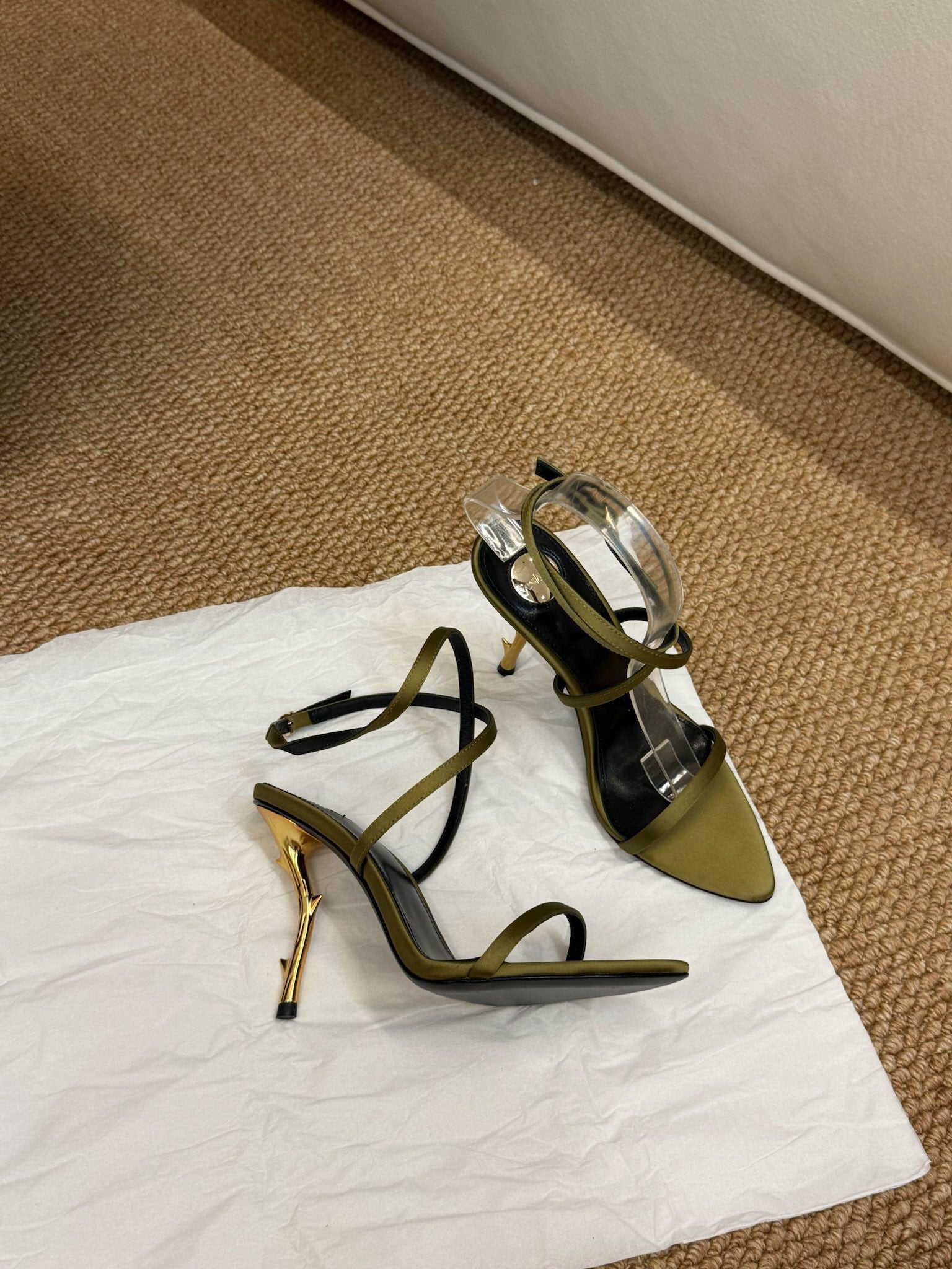 YSL HIGH HEEL SANDALS 25S IN MOSS GREEN SATIN AND LAMBSKIN