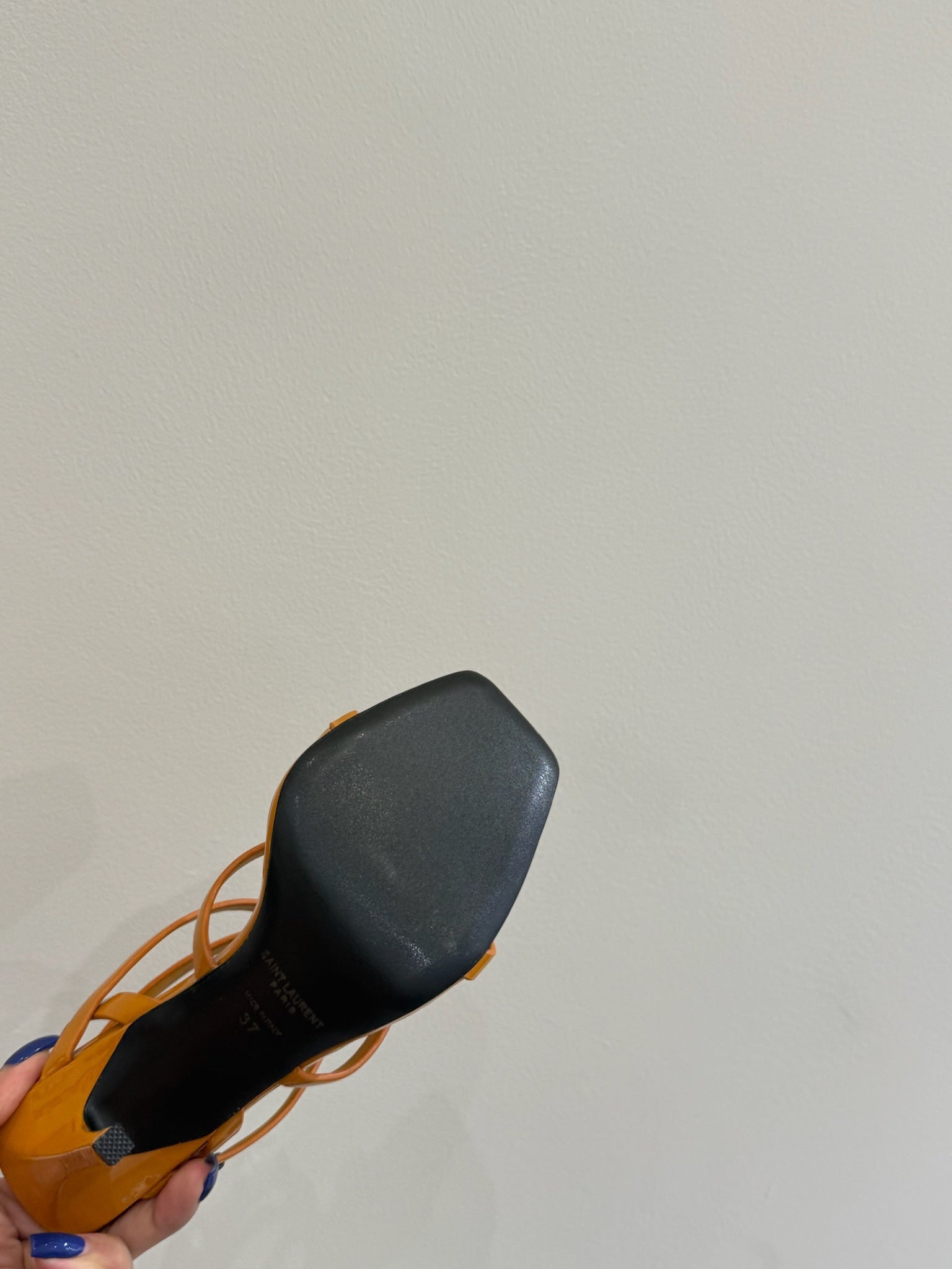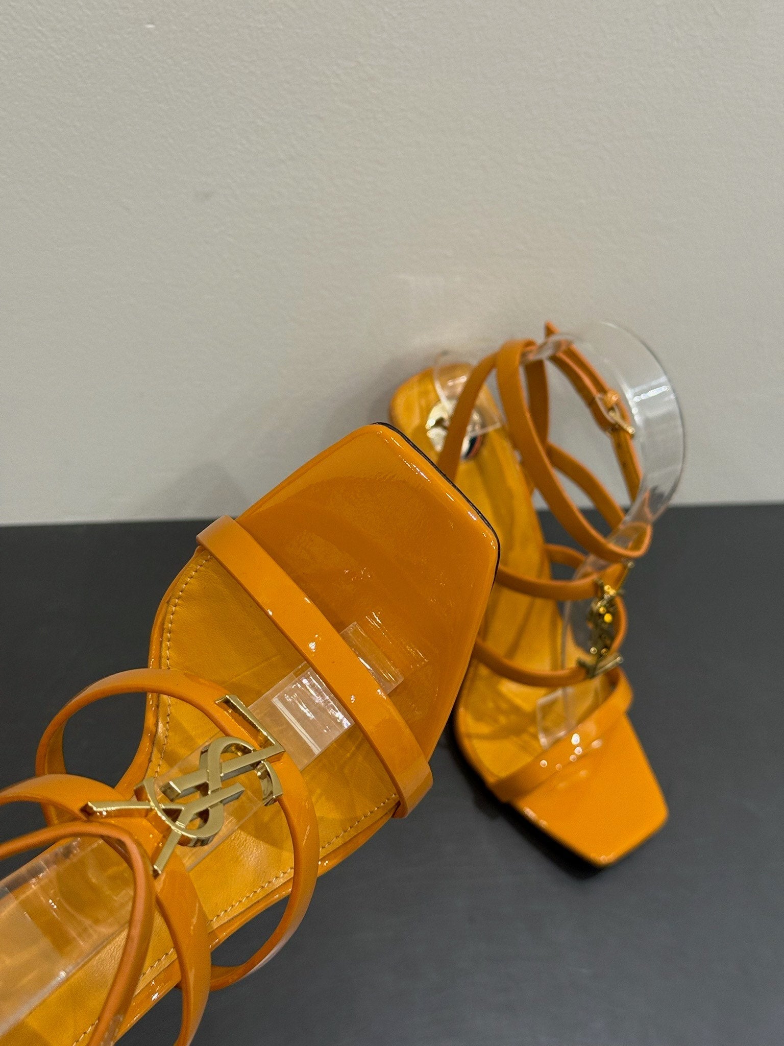 YSL SINGLE-STRAP HEELED SANDALS 25S IN DARK ORANGE LAMBSKIN