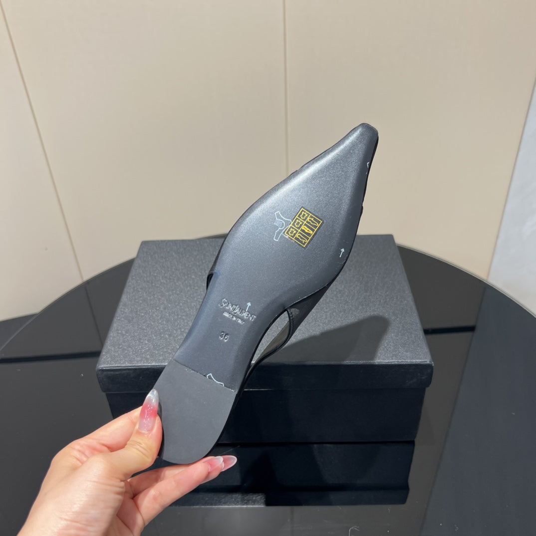 YSL SLINGBACK FLATS 25S IN BLACK SATIN FABRIC WITH GOLD HARDWARE