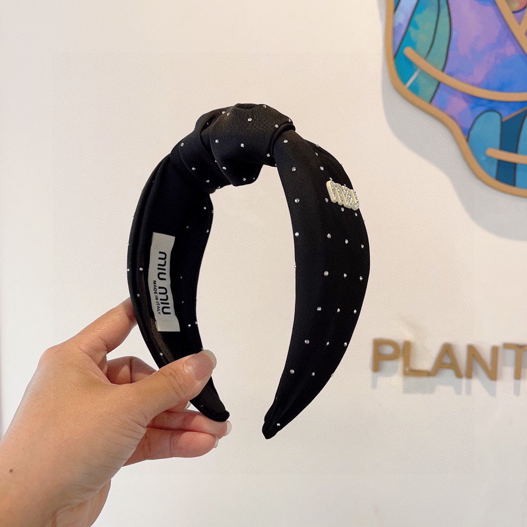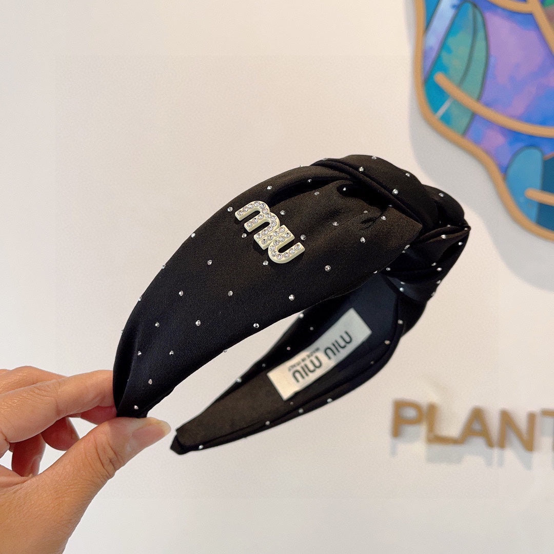CRYSTALS EMBELLISHED HEAD BAND IN BLACK COTTON 418873