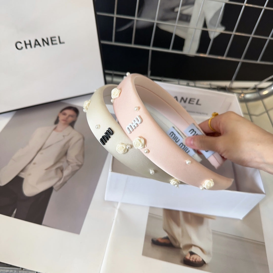 HEADBAND EMBELLISHED FLOWER AND PEARL IN IVORY WHITE SILK 194316