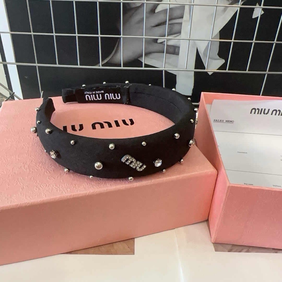 THICK HEADBAND ATTACHED BEADED IN BLACK FABRIC 429361