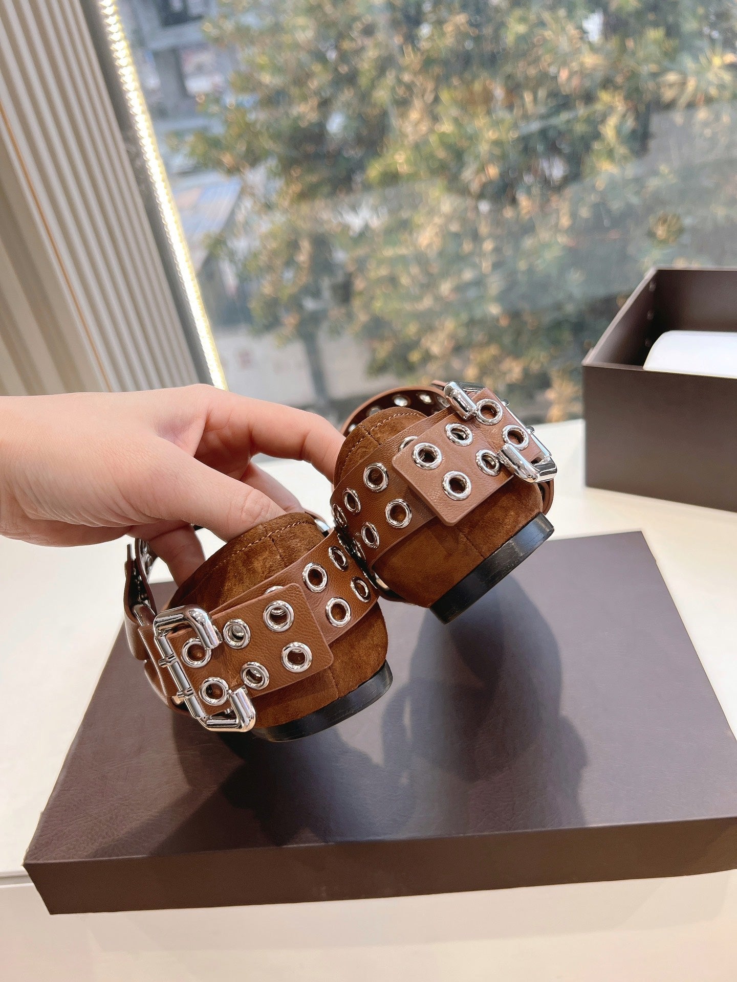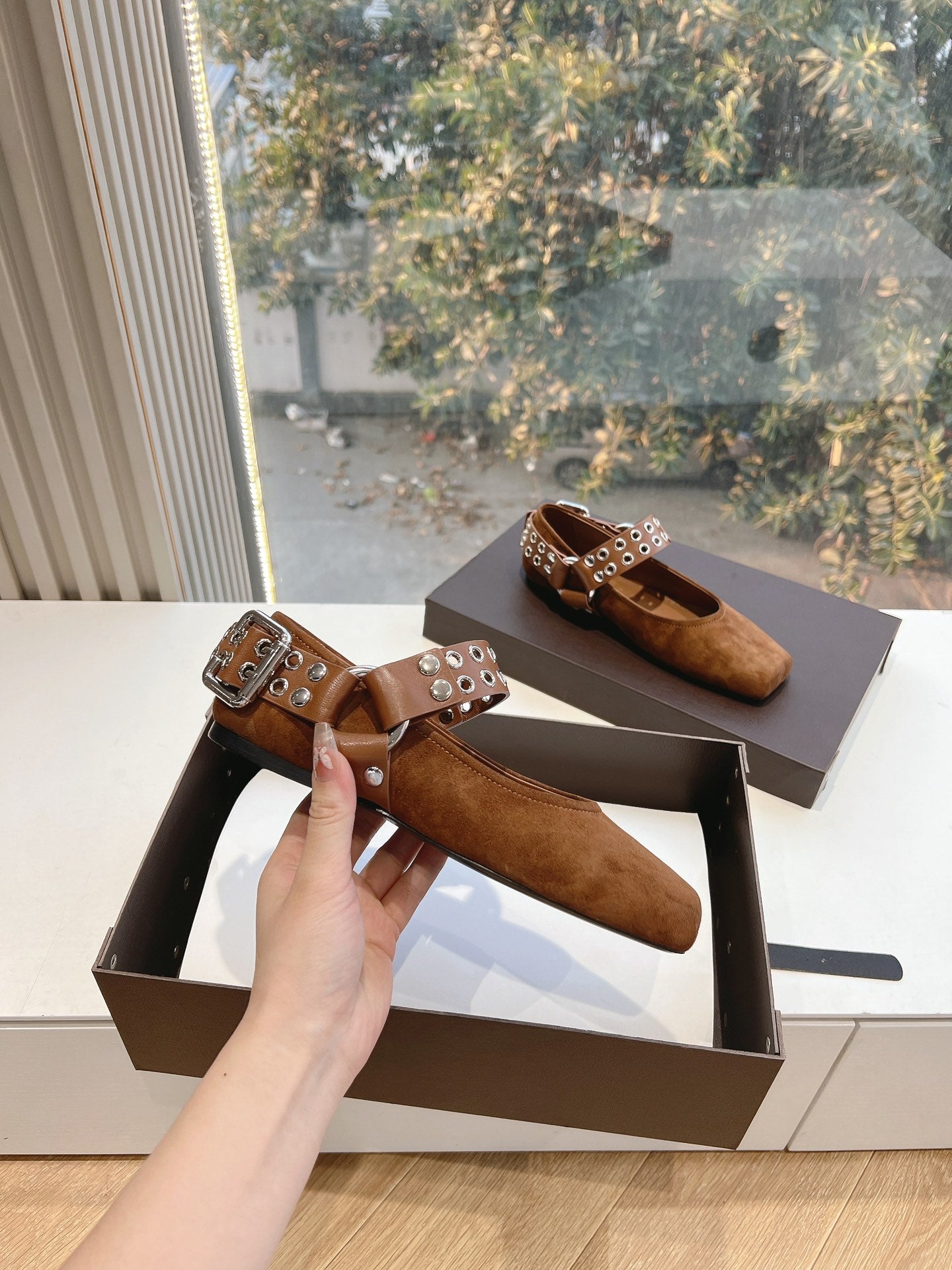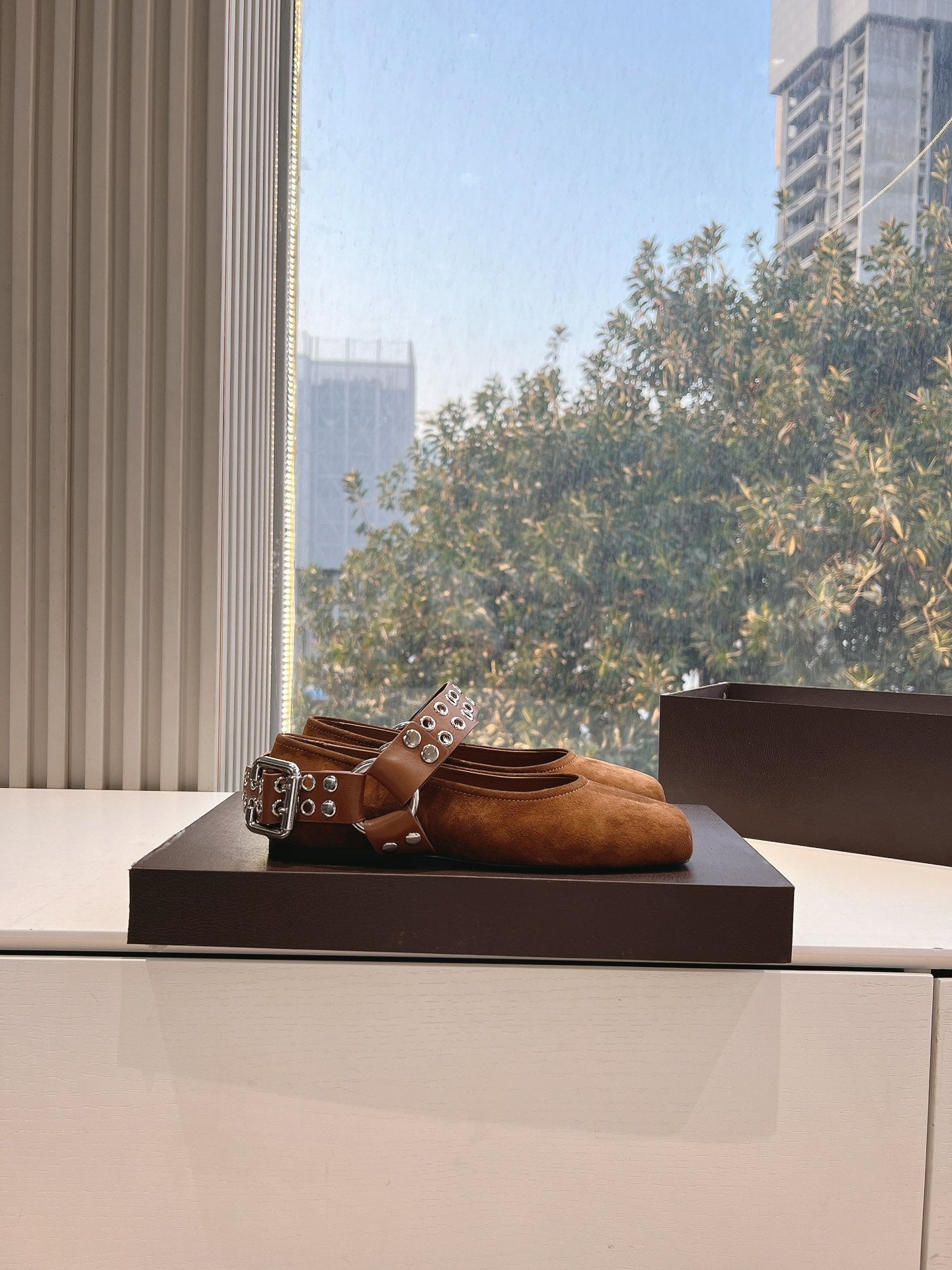 ALAIA 26S FLATS IN BROWN SUEDE WITH SILVER STUD STRAP