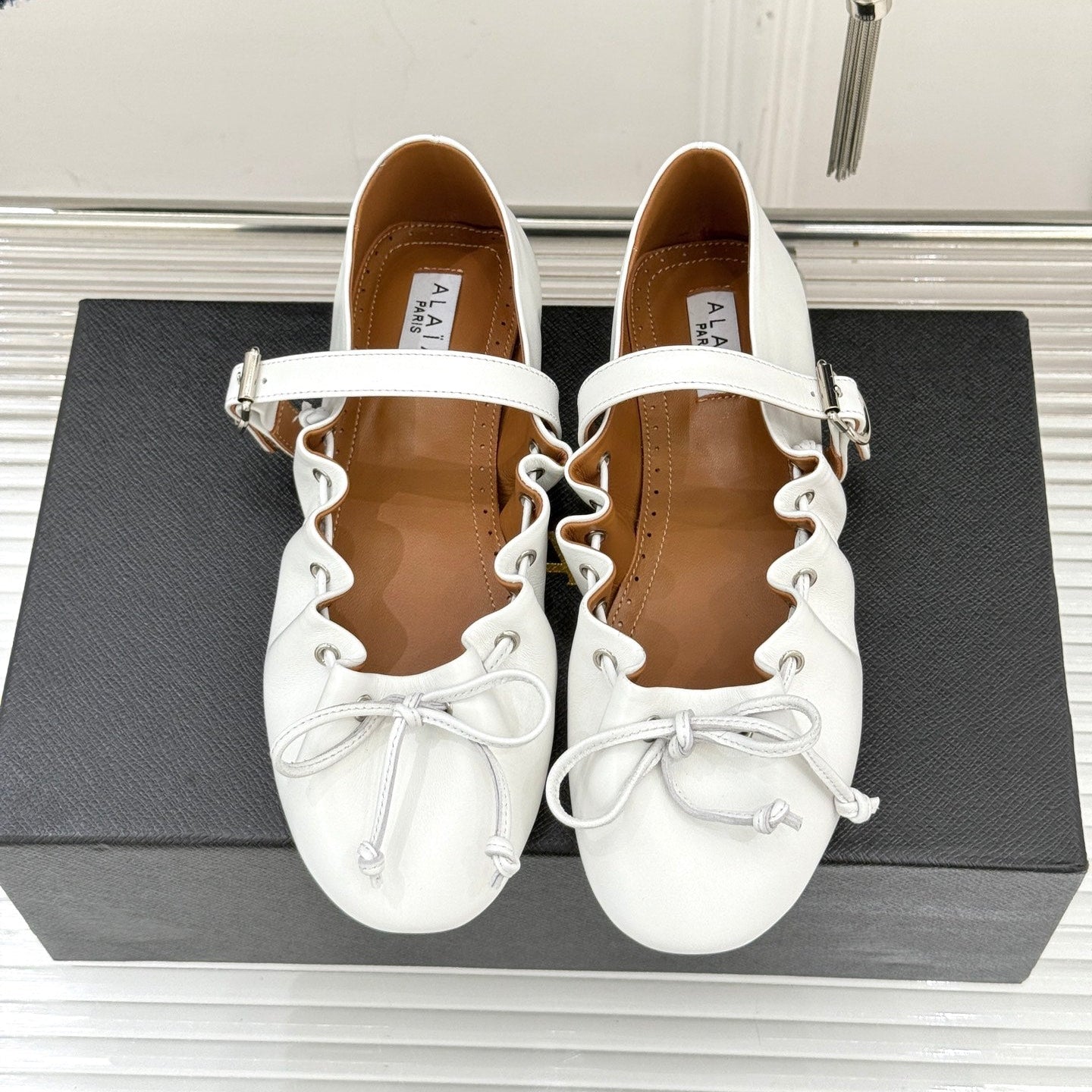 ALAIA 26S MARY JANE FLATS IN WHITE LAMBSKIN WITH BOW