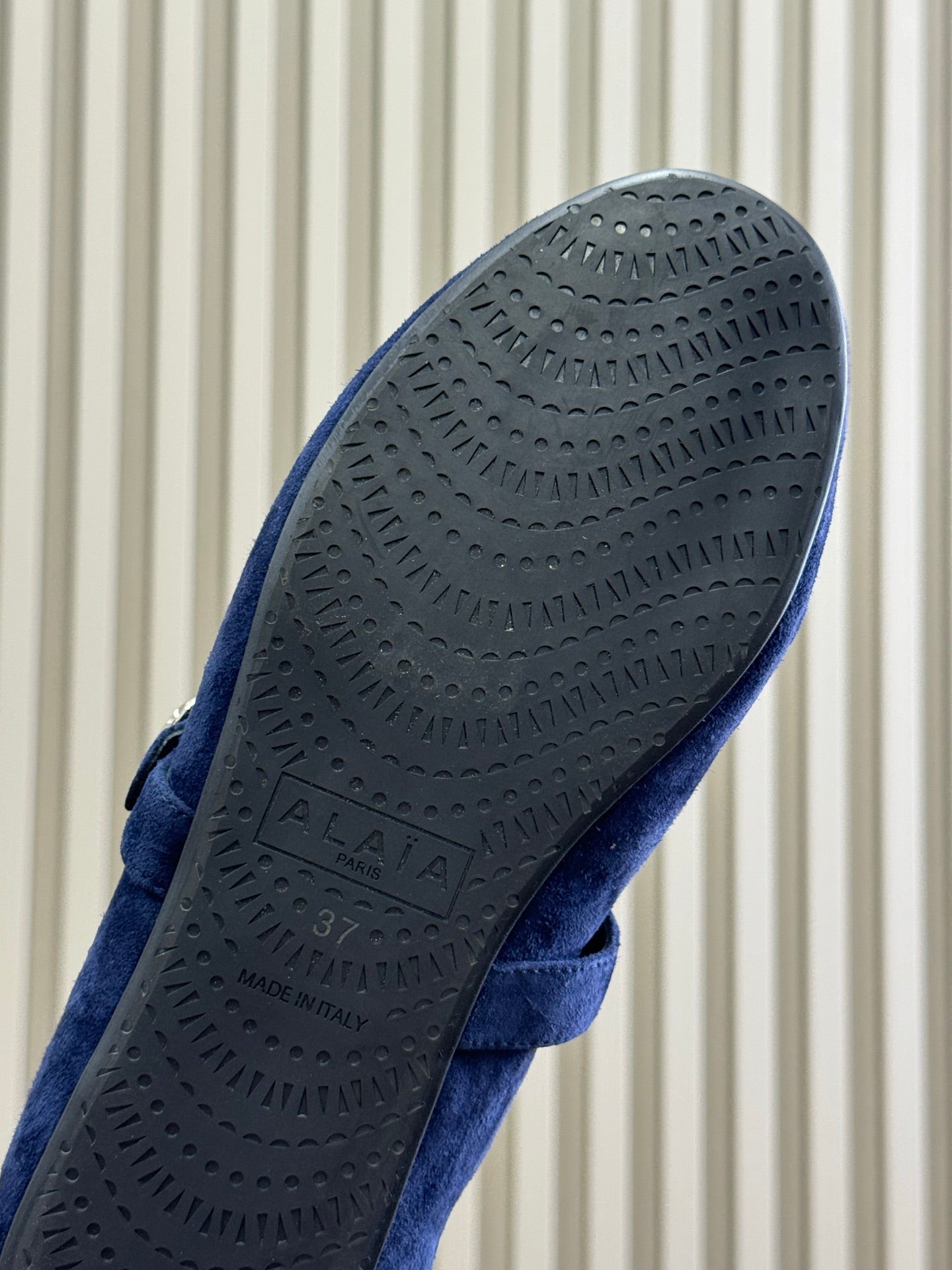 ALAIA 25S MARY JANE SHEARLING FLATS IN DARK BLUE SUEDE