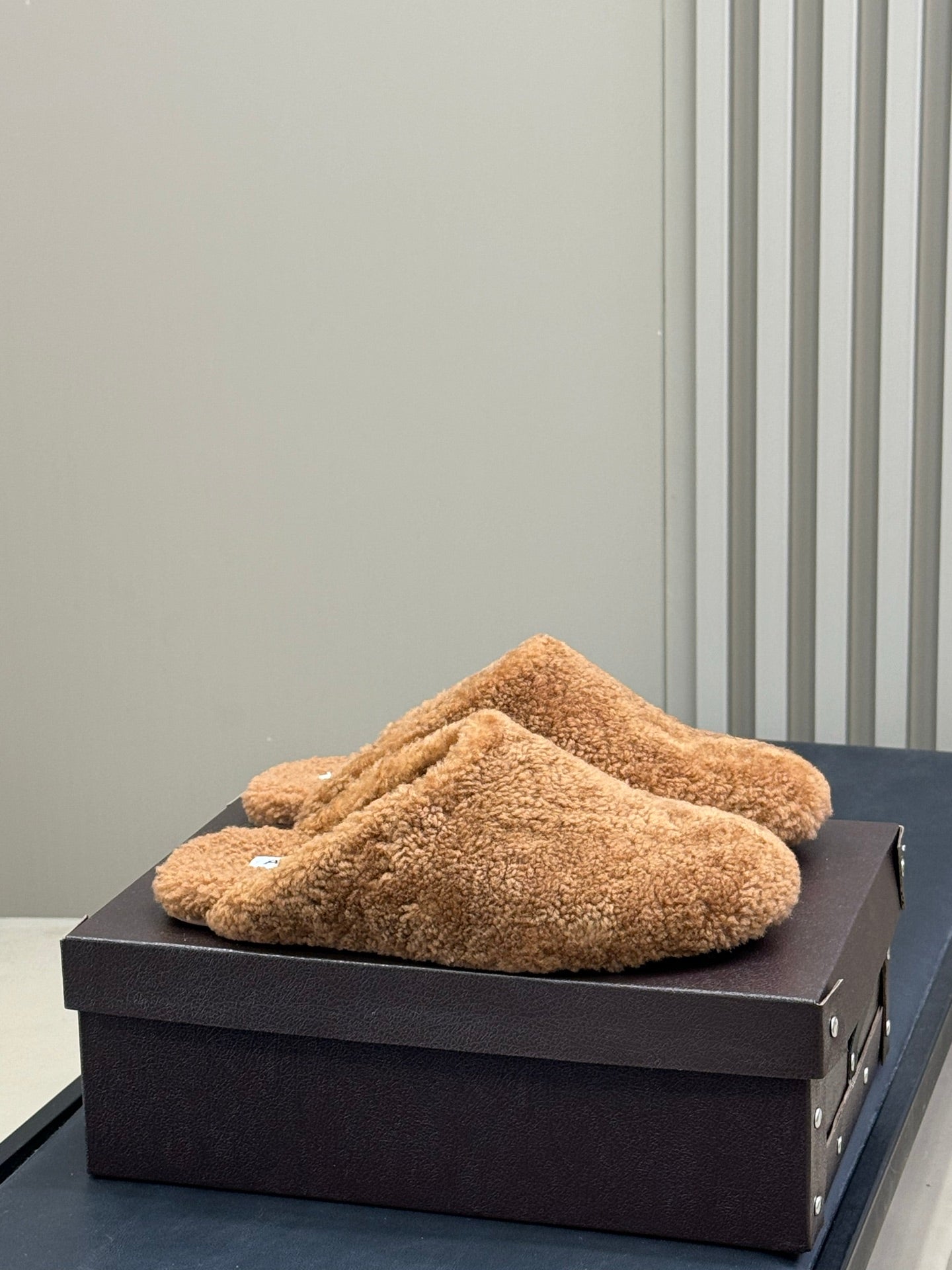 ALAIA 25S SHEARLING COZY SLIPPERS IN CARAMEL