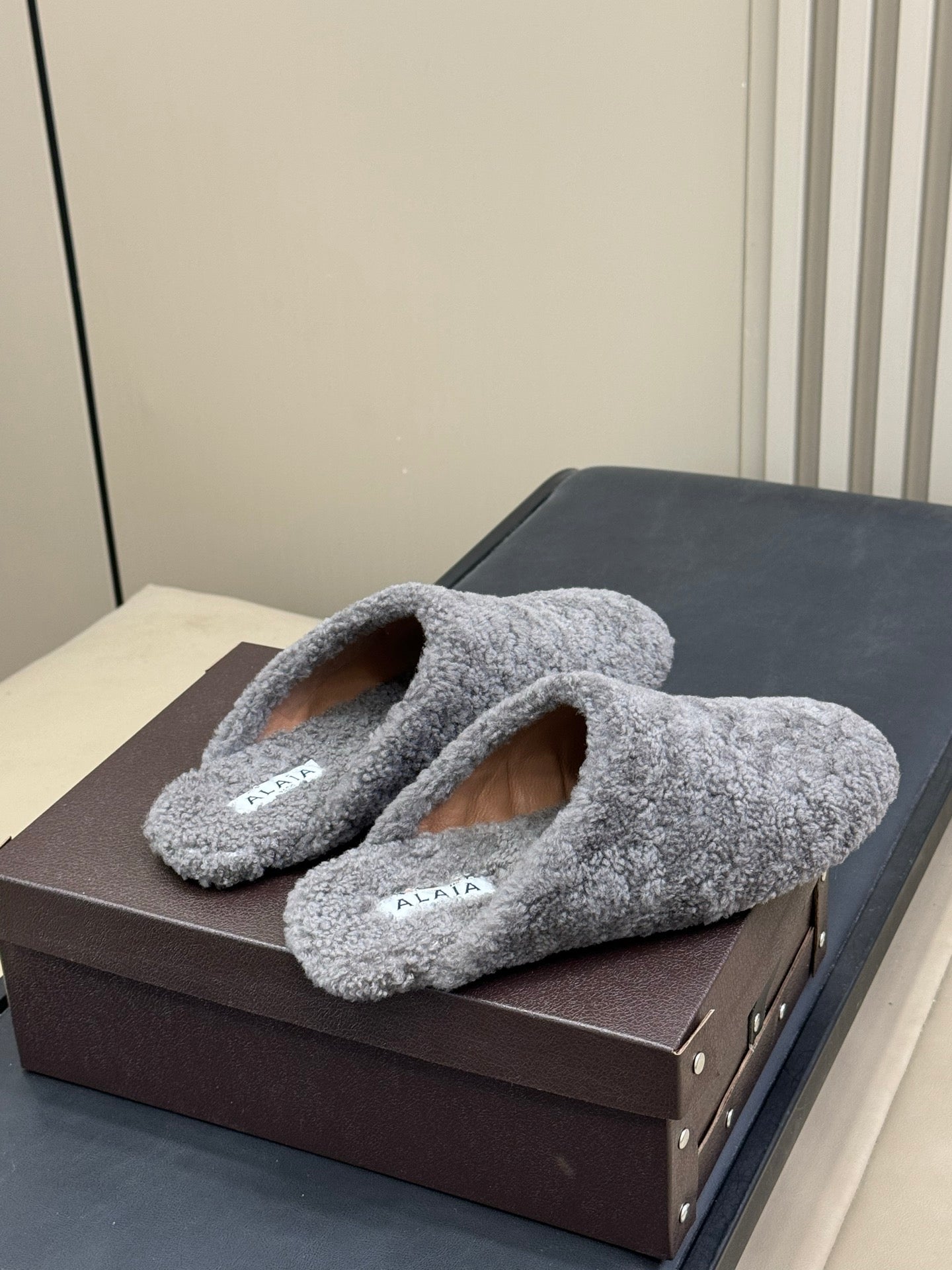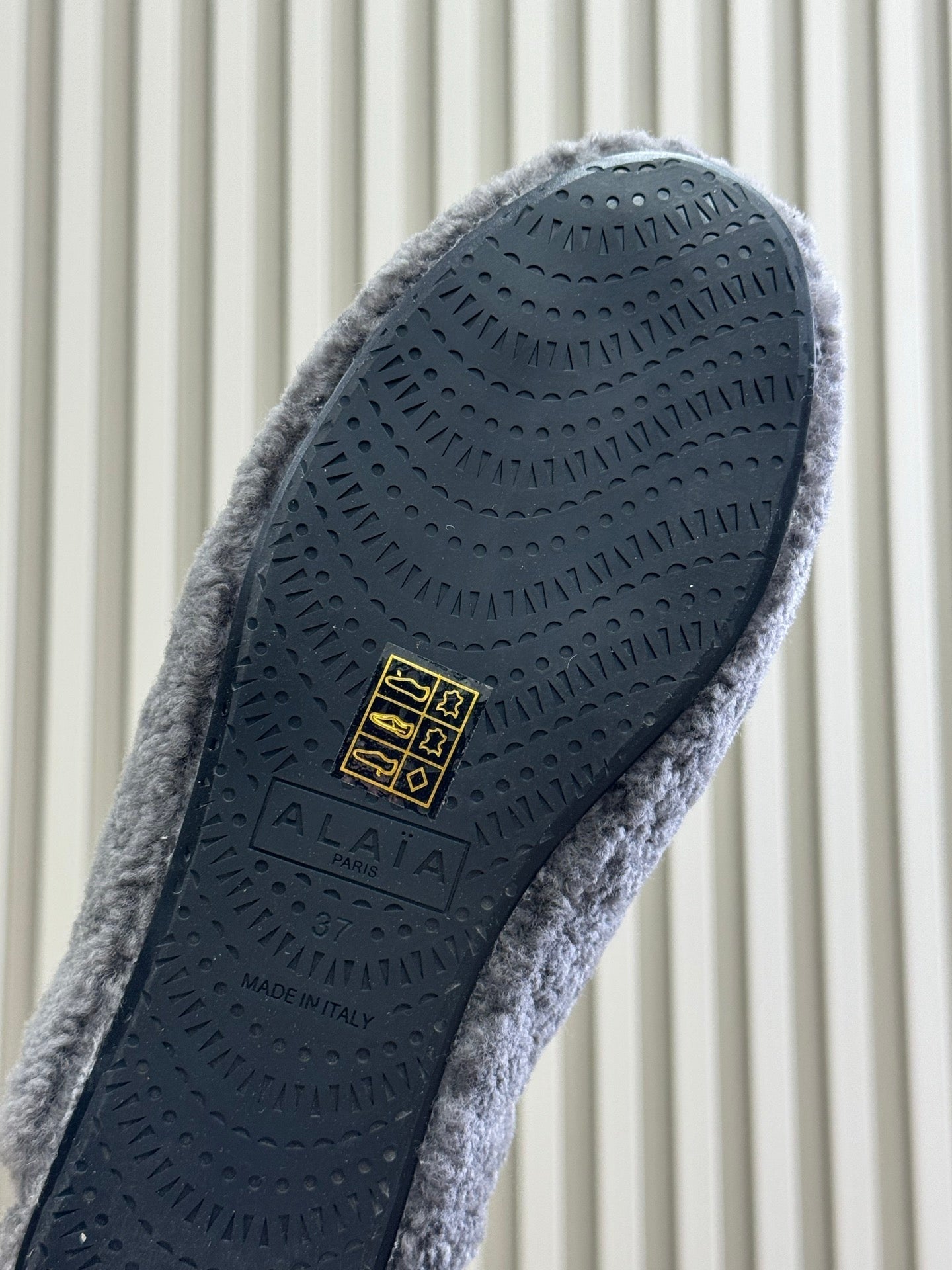 ALAIA 25S SHEARLING COZY SLIPPERS IN DARK GRAY