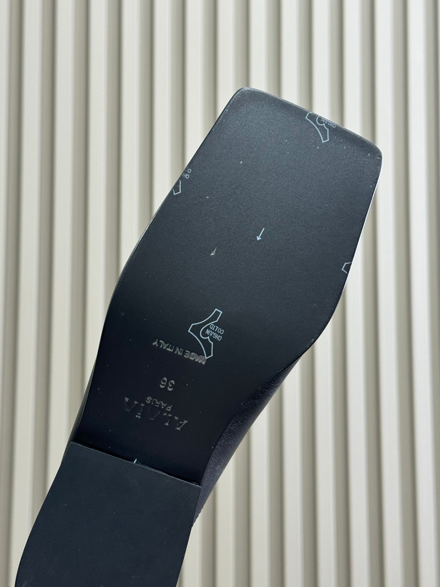 ALAIA 25S SQUARE LOAFER MULES IN BLACK GLOSSY CALFSKIN