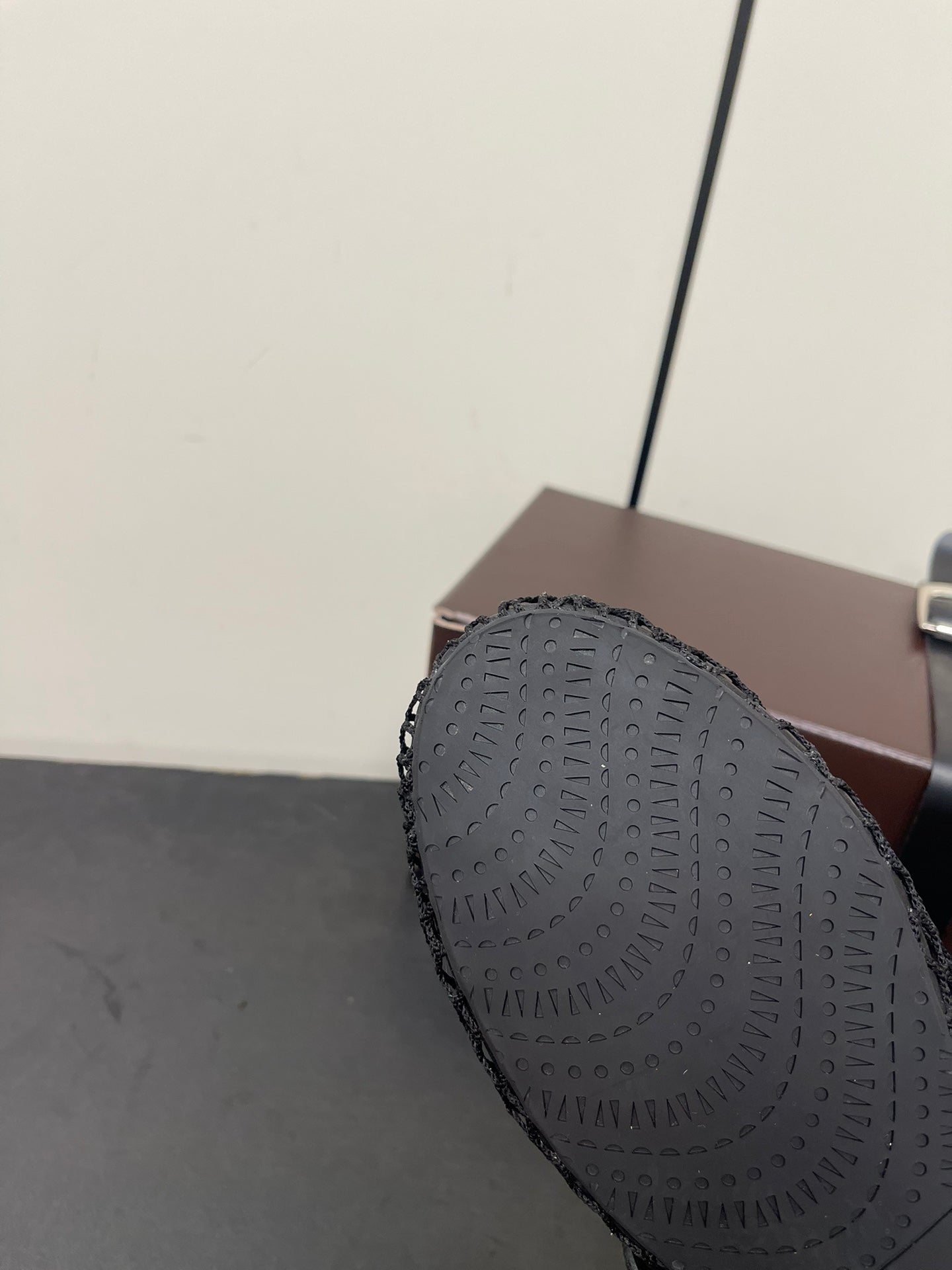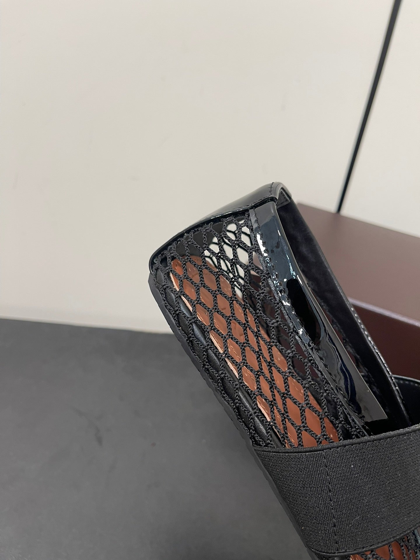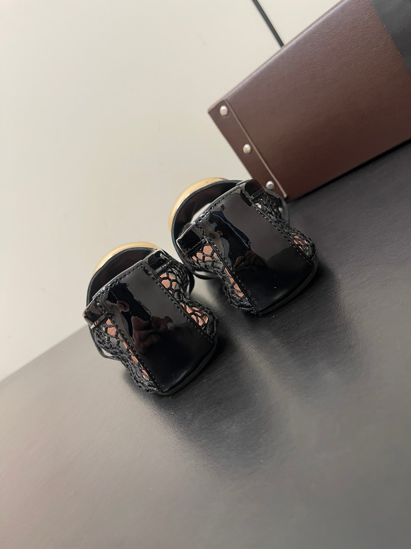 ALAIA BALLET FLATS IN BLACK MESH FISHNET WITH GOLD HARDWARE