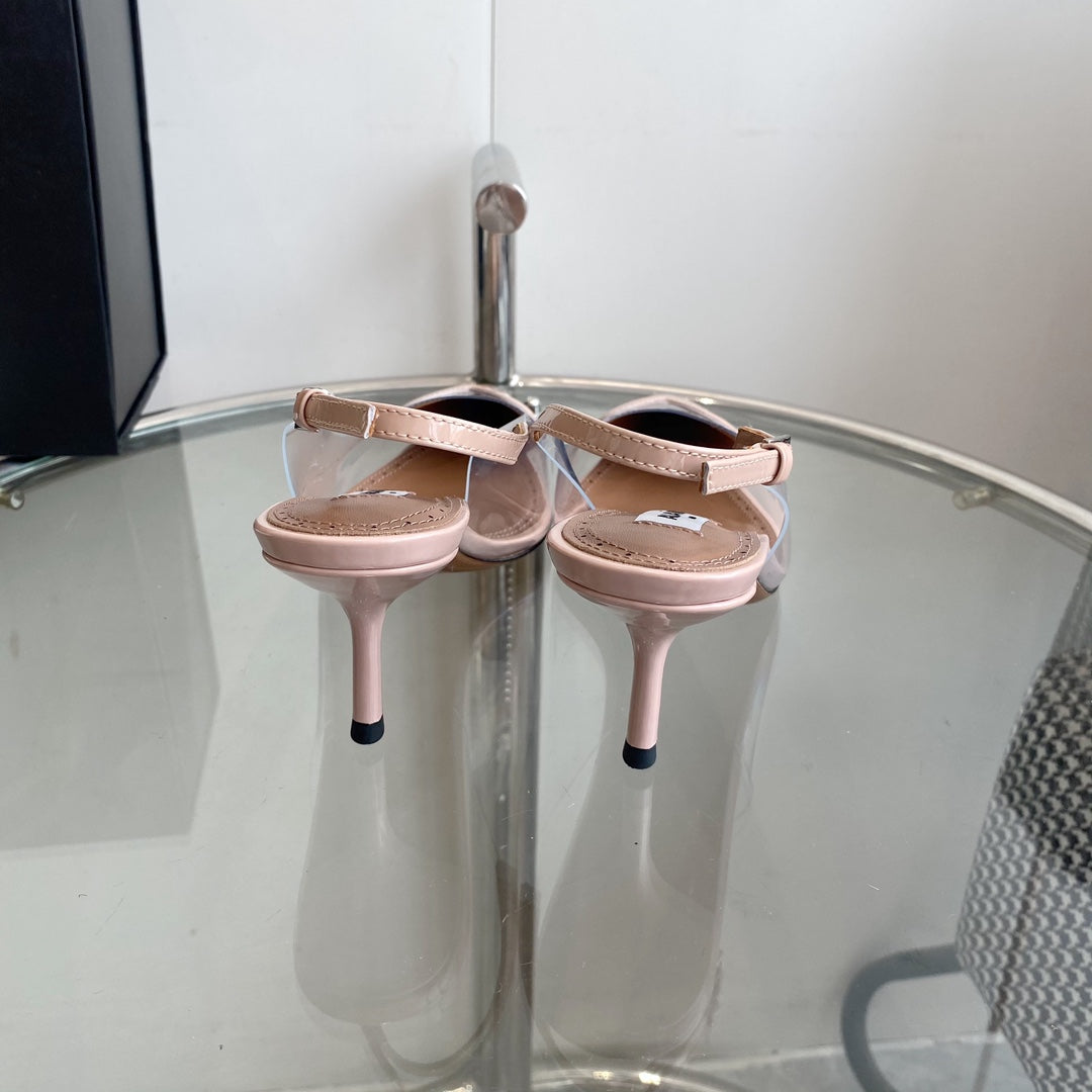 ALAIA HIGH 6 CM SLINGBACK IN BEIGE CREAM PATENT CALFSKIN AND FILM