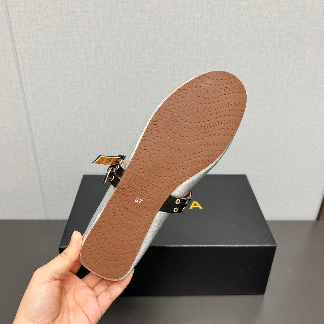 ALAIA MARY JANE SHOES IN SILVER LAMBSKIN SILVER HARDWARE