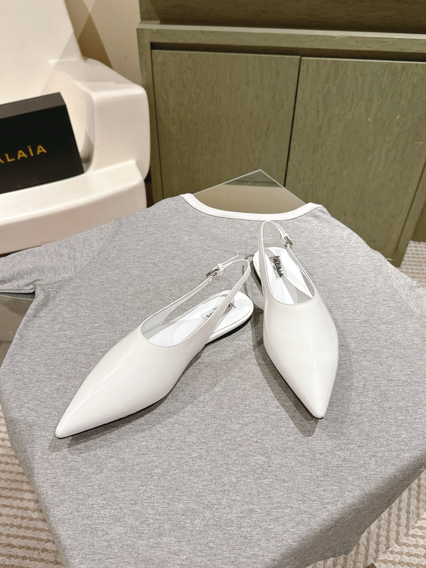 ALAIA SLINGBACK 25S IN WHITE PATENT LEATHER