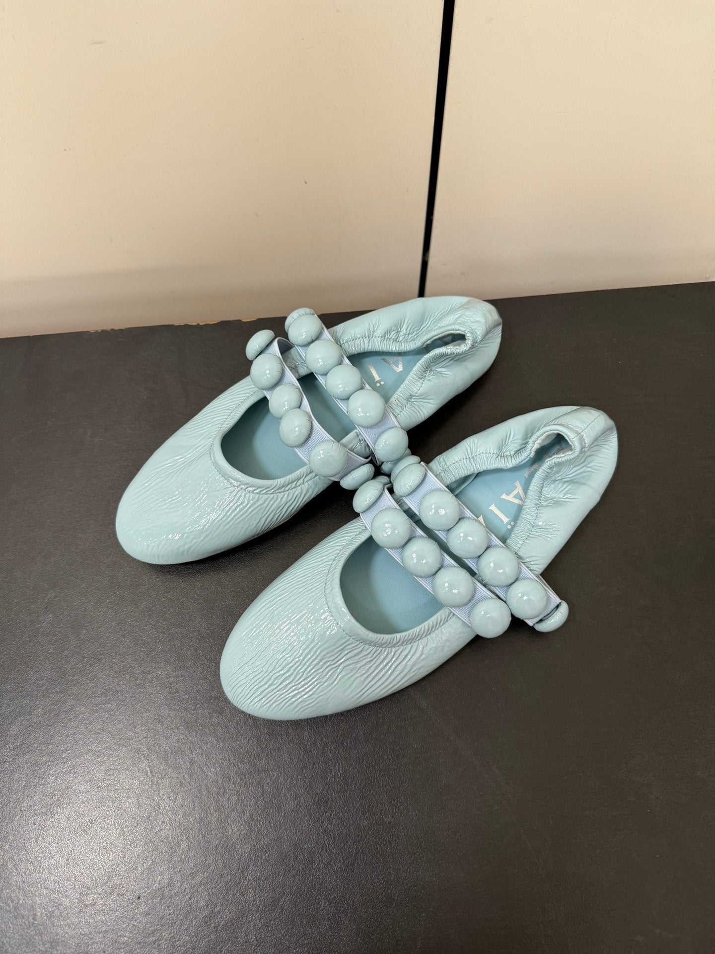 ALAIA SPHERE BALLET FLATS IN LIGHT BLUE LAMBSKIN