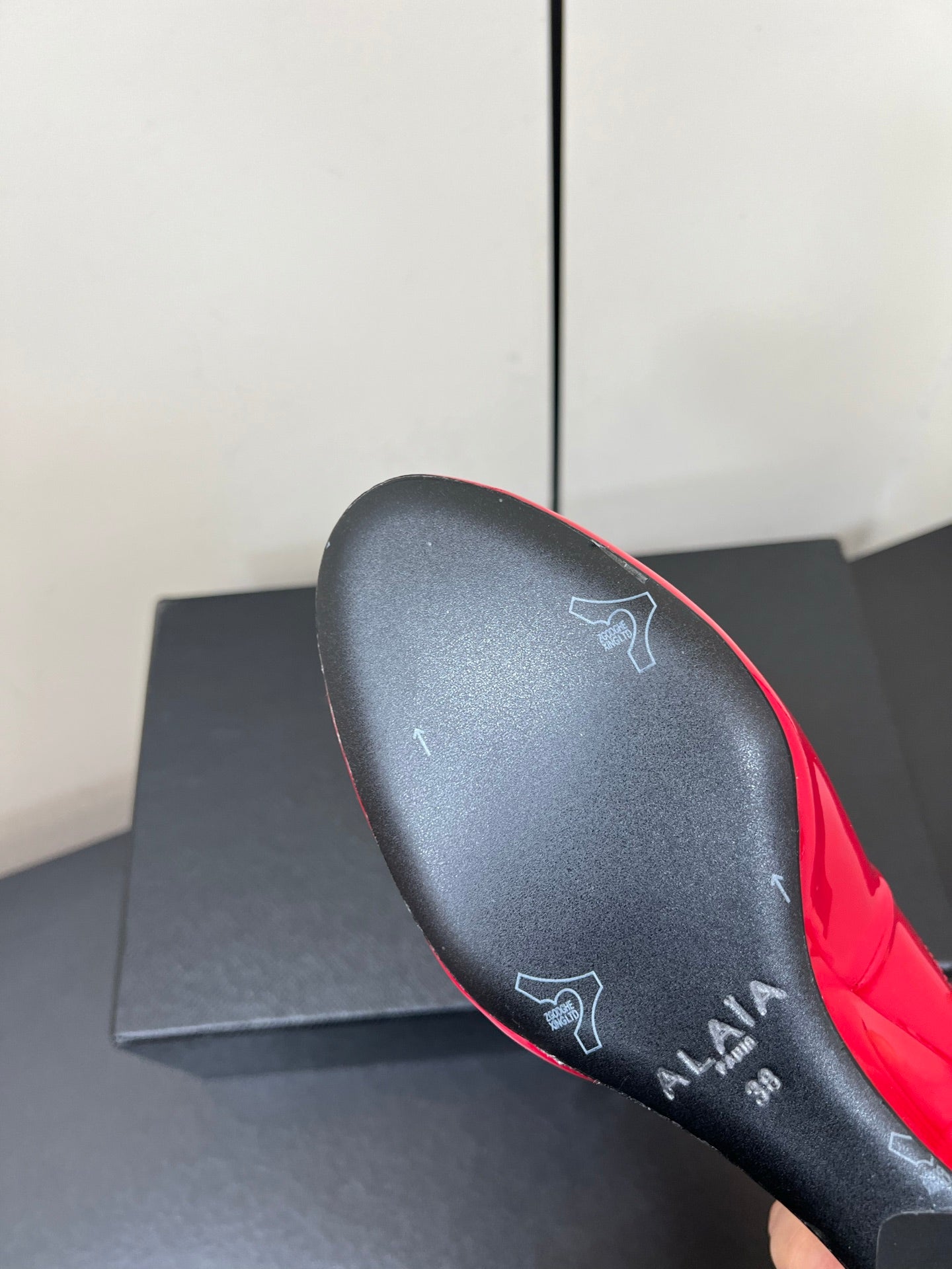 ALAIA WEDGE MULES 25S IN RED LAMBSKIN