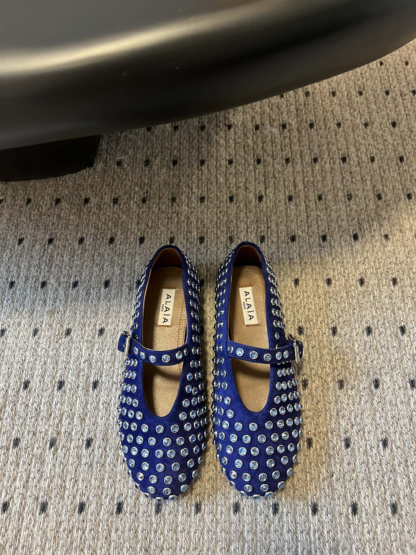STRASS BALLET FLATS IN COBALT BLUE LAMBSKIN