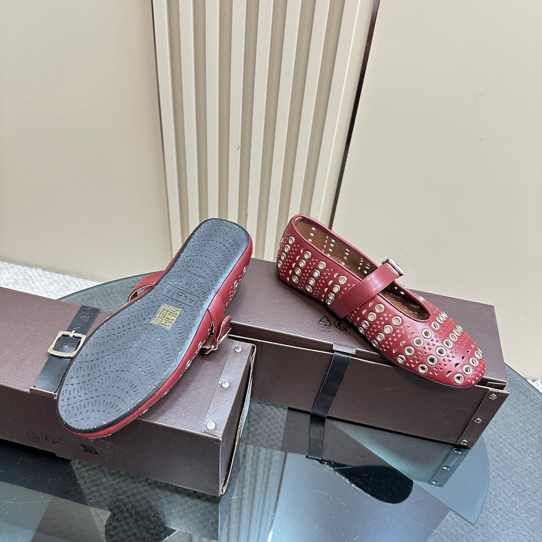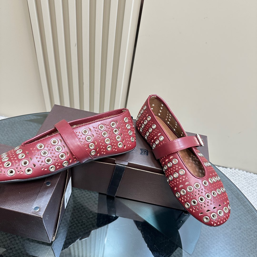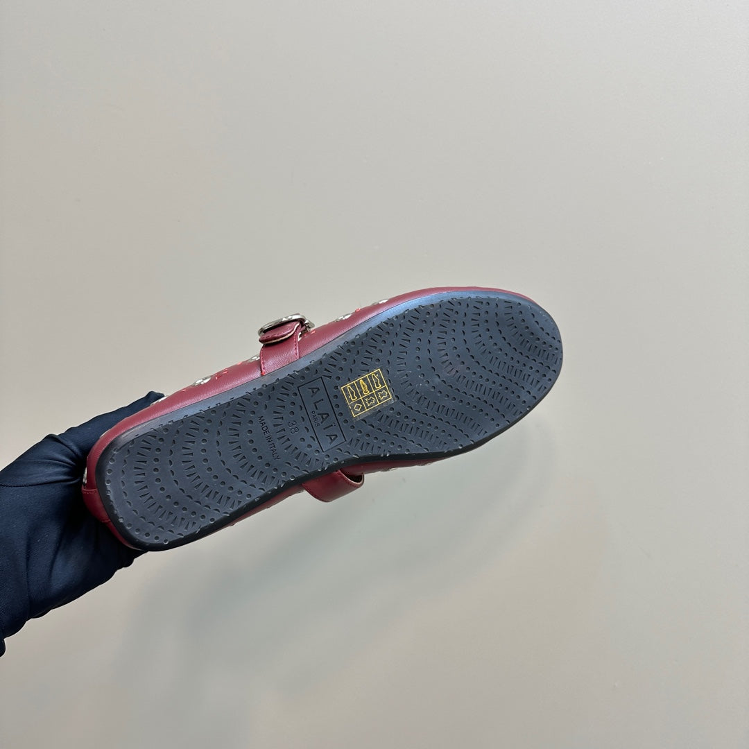 STRASS BALLET FLATS IN RUBY RED CALFSKIN
