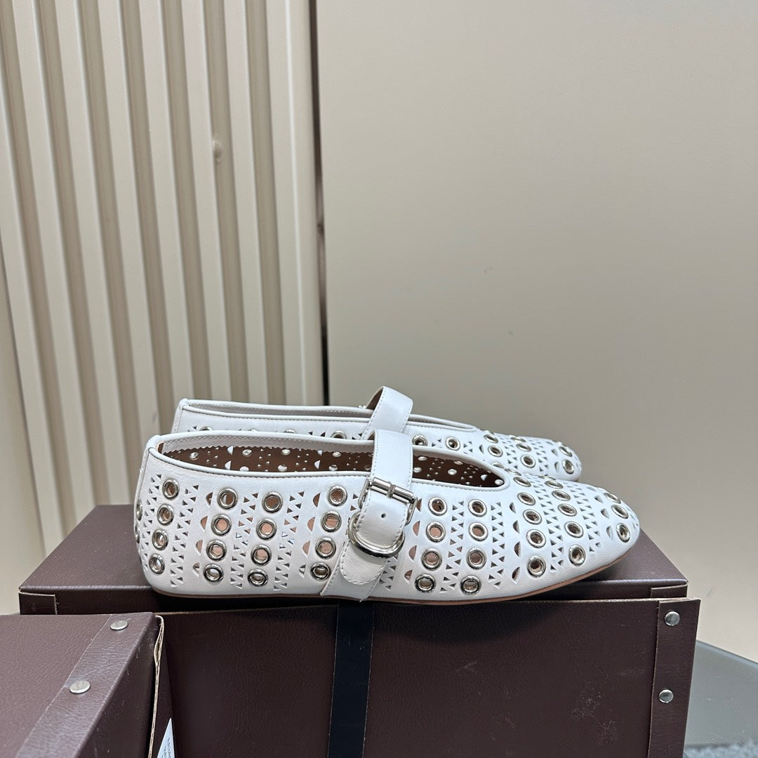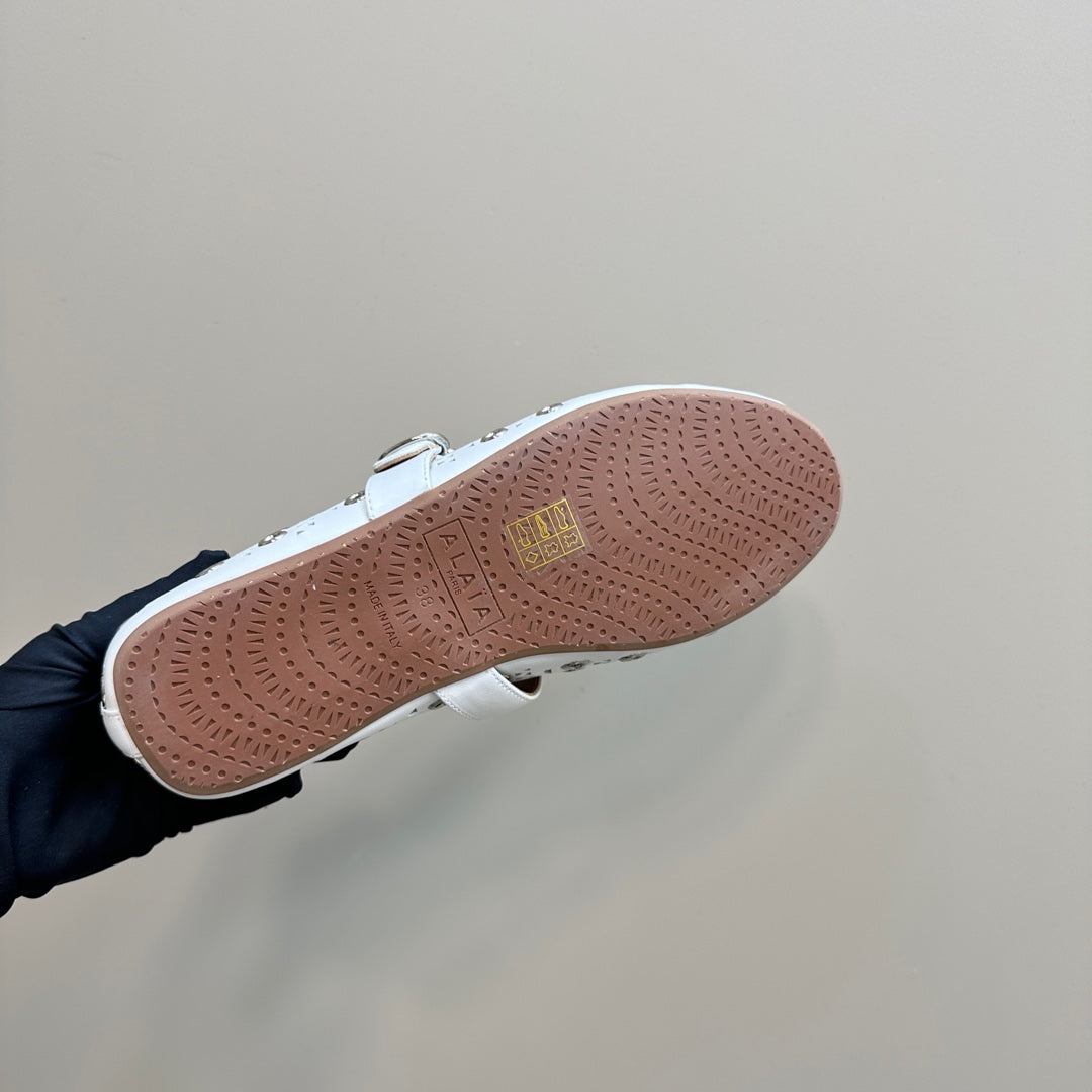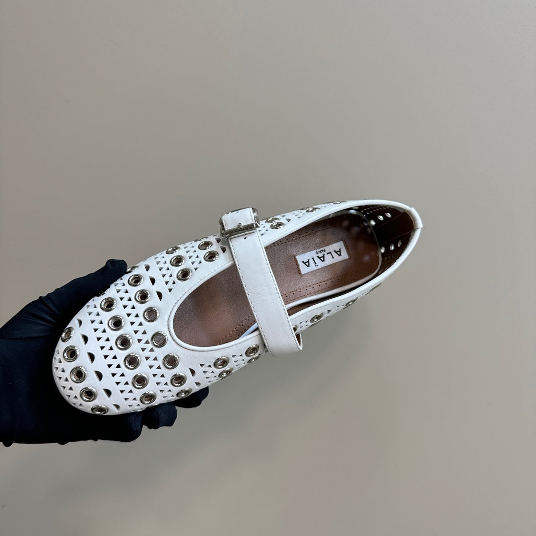 STRASS BALLET FLATS IN WHITE CALFSKIN