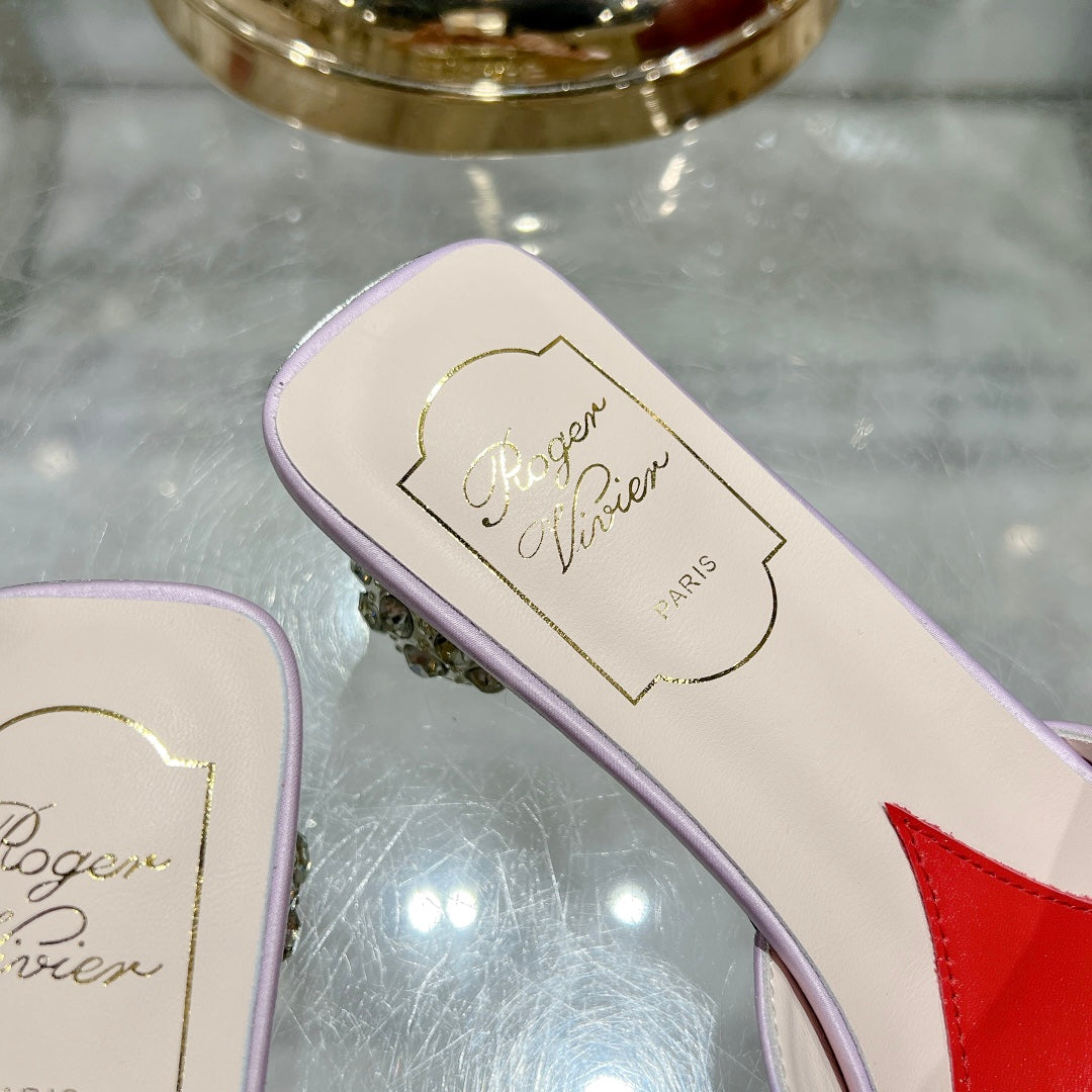 CRYSTAL HEEL MULE IN LIGHT PURPLE SILK