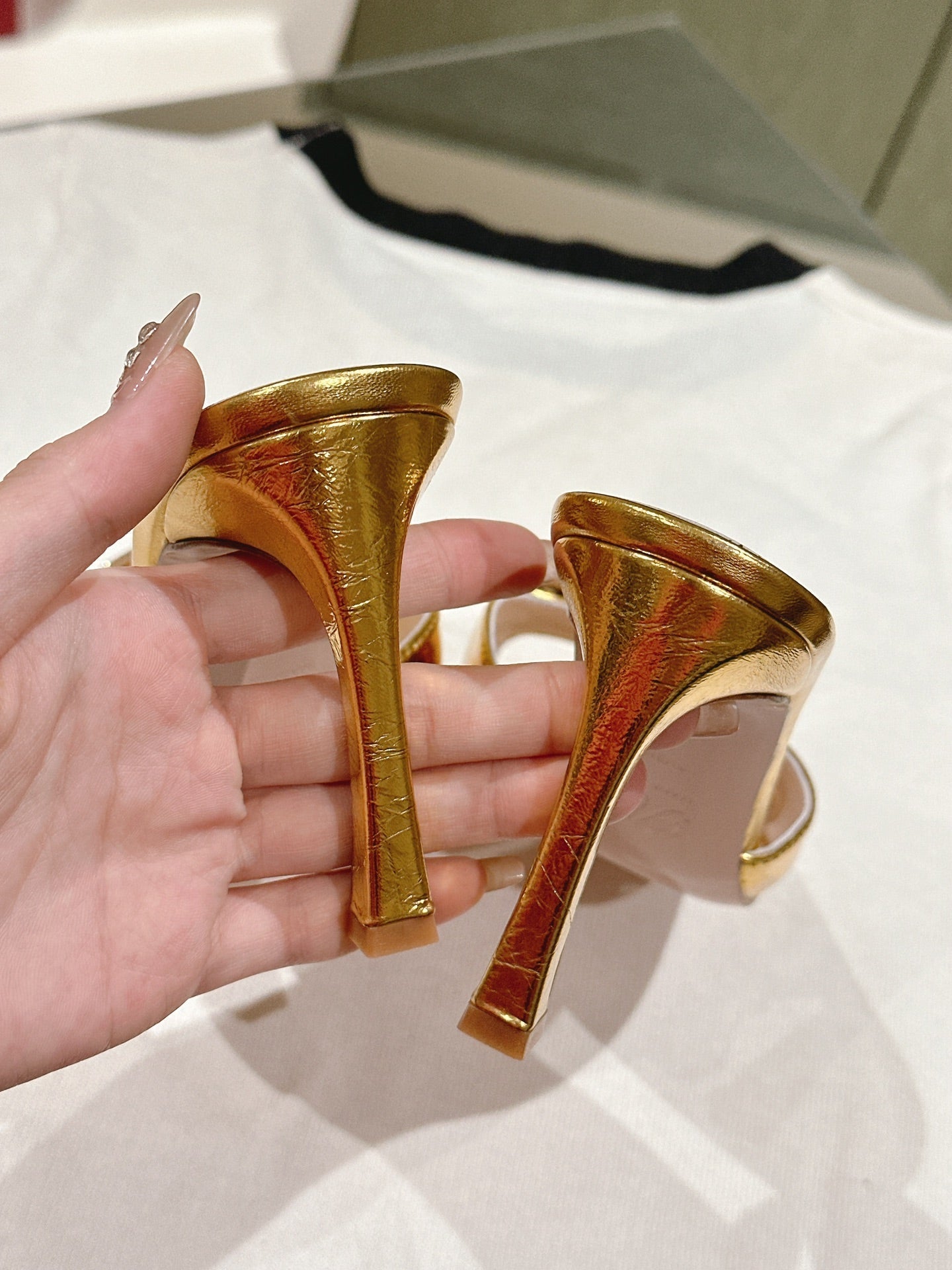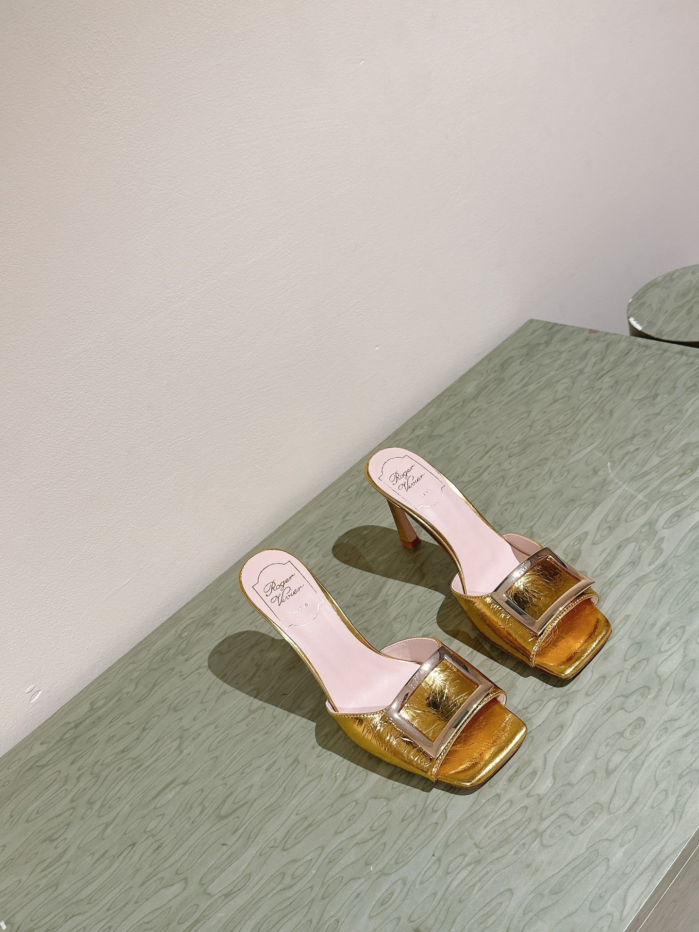 TRUMPET METALLIC MULES IN GOLD PATENT CALFSKIN