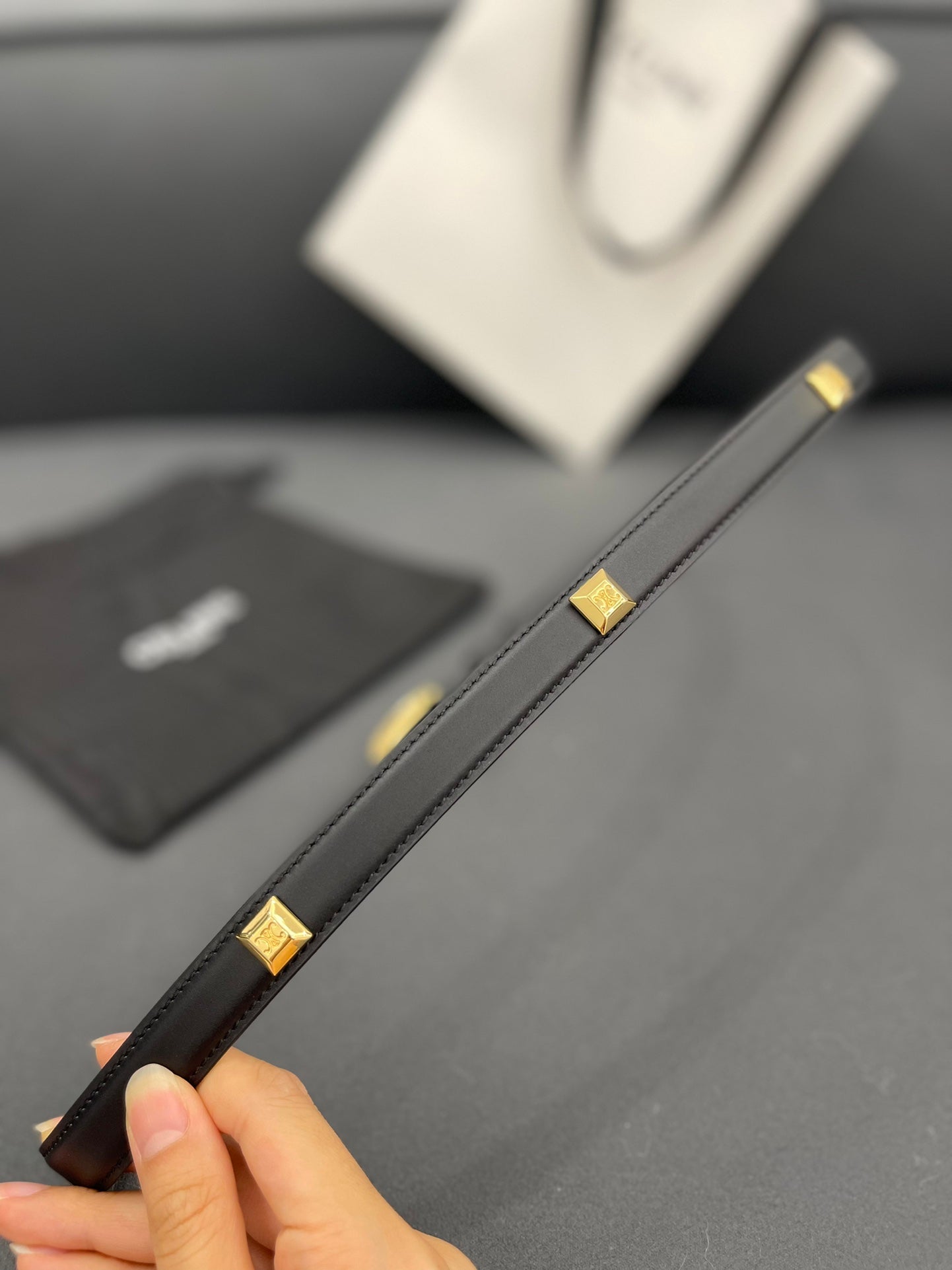 CL SMALL 18 MM TRIOMPHE BELT IN TAURILLON BLACK LEATHER GOLD HARDWARE