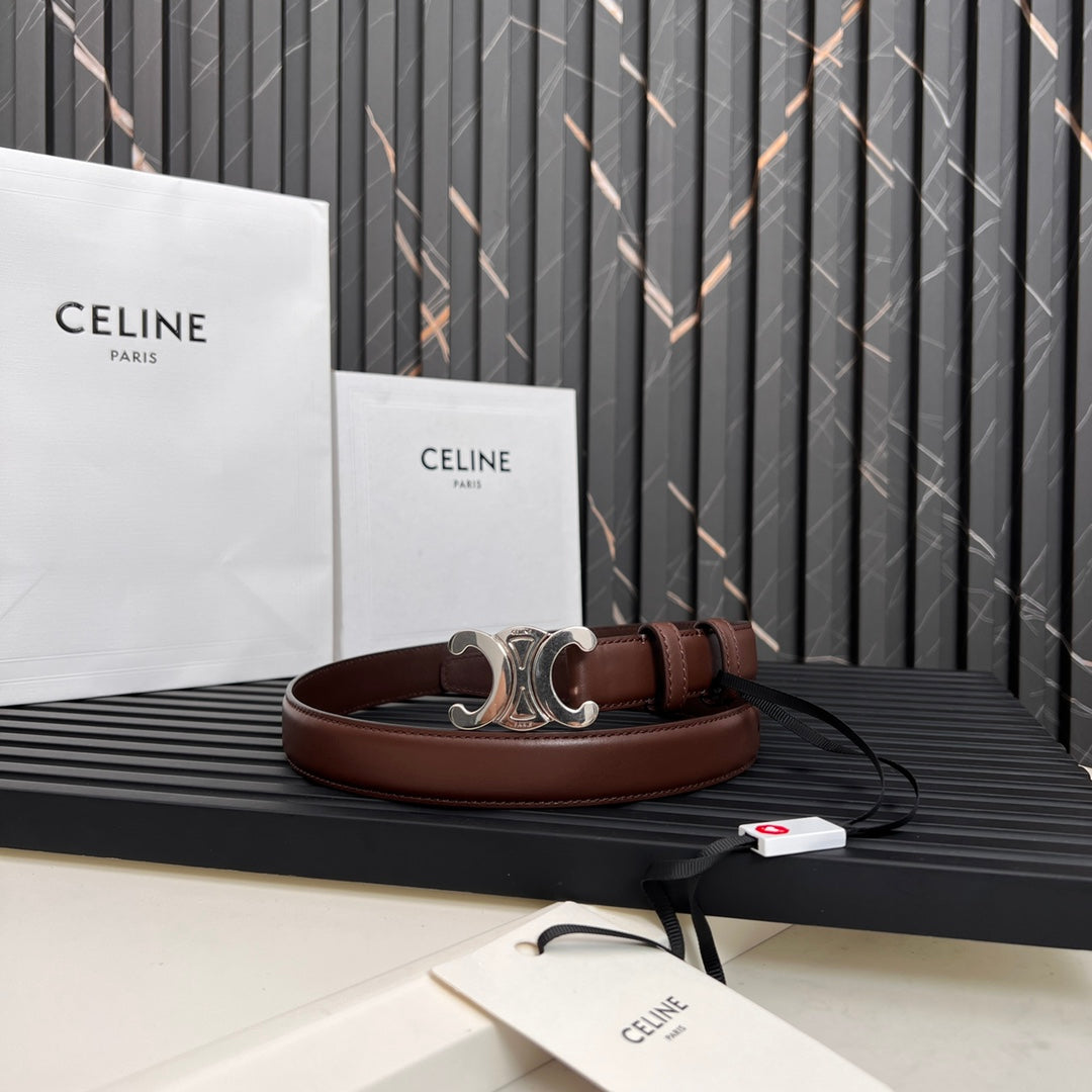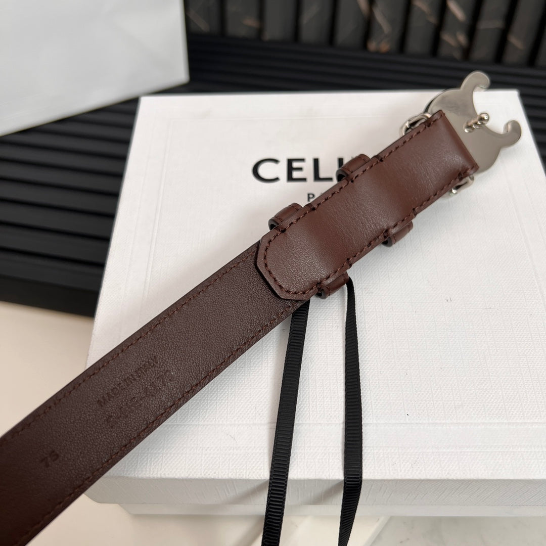 TRIOMPHE 25 MM BELT IN DARK BROWN CALFSKIN SILVER HARDWARE