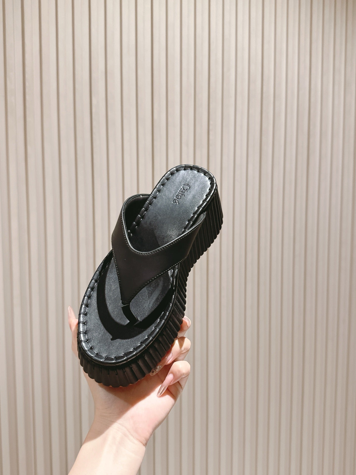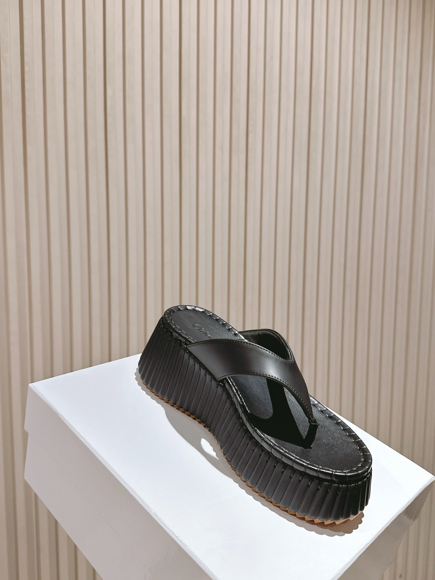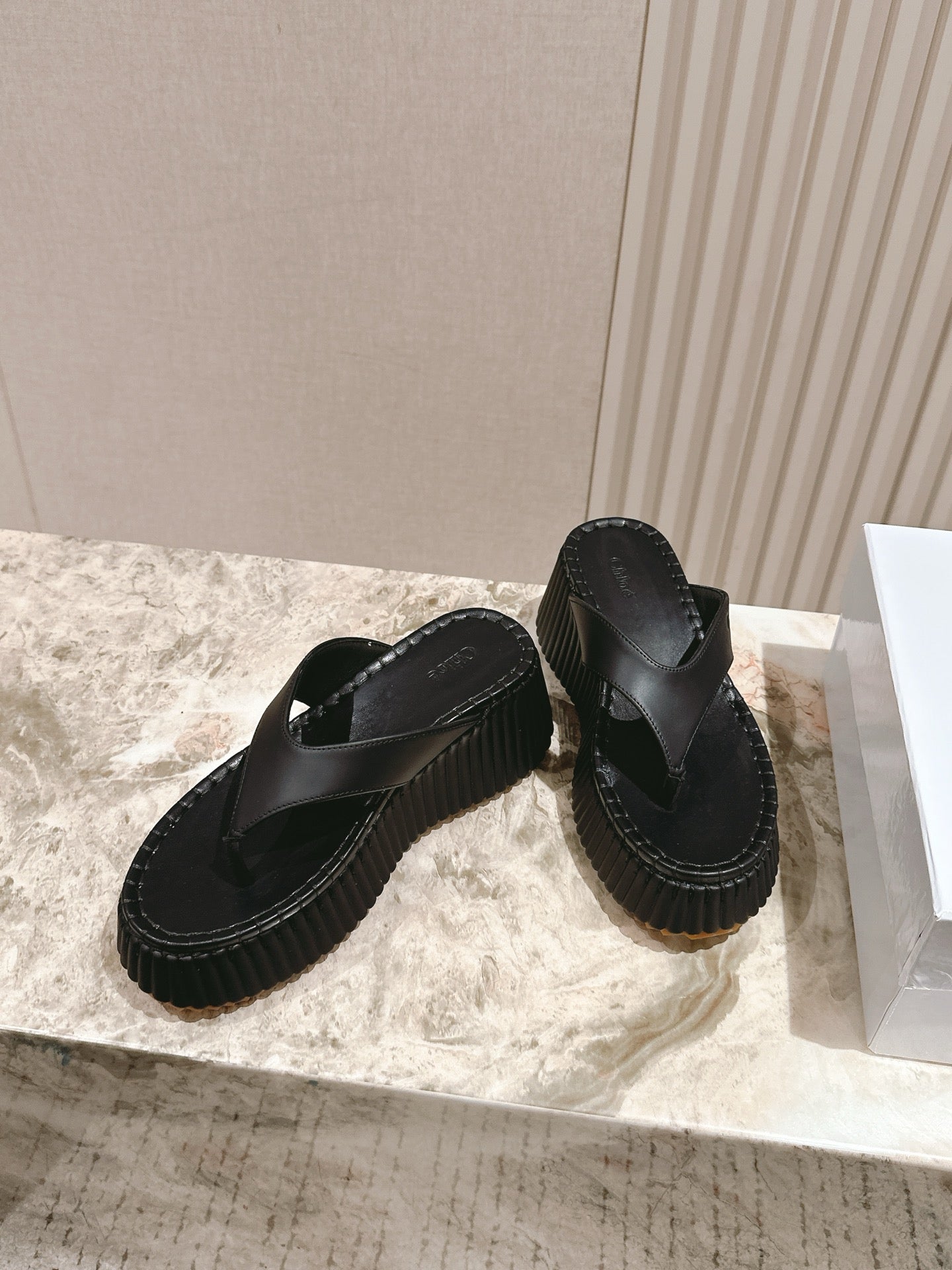 CHLOÉ 26S PLATFORM FLIP-FLOPS IN BLACK LAMBSKIN
