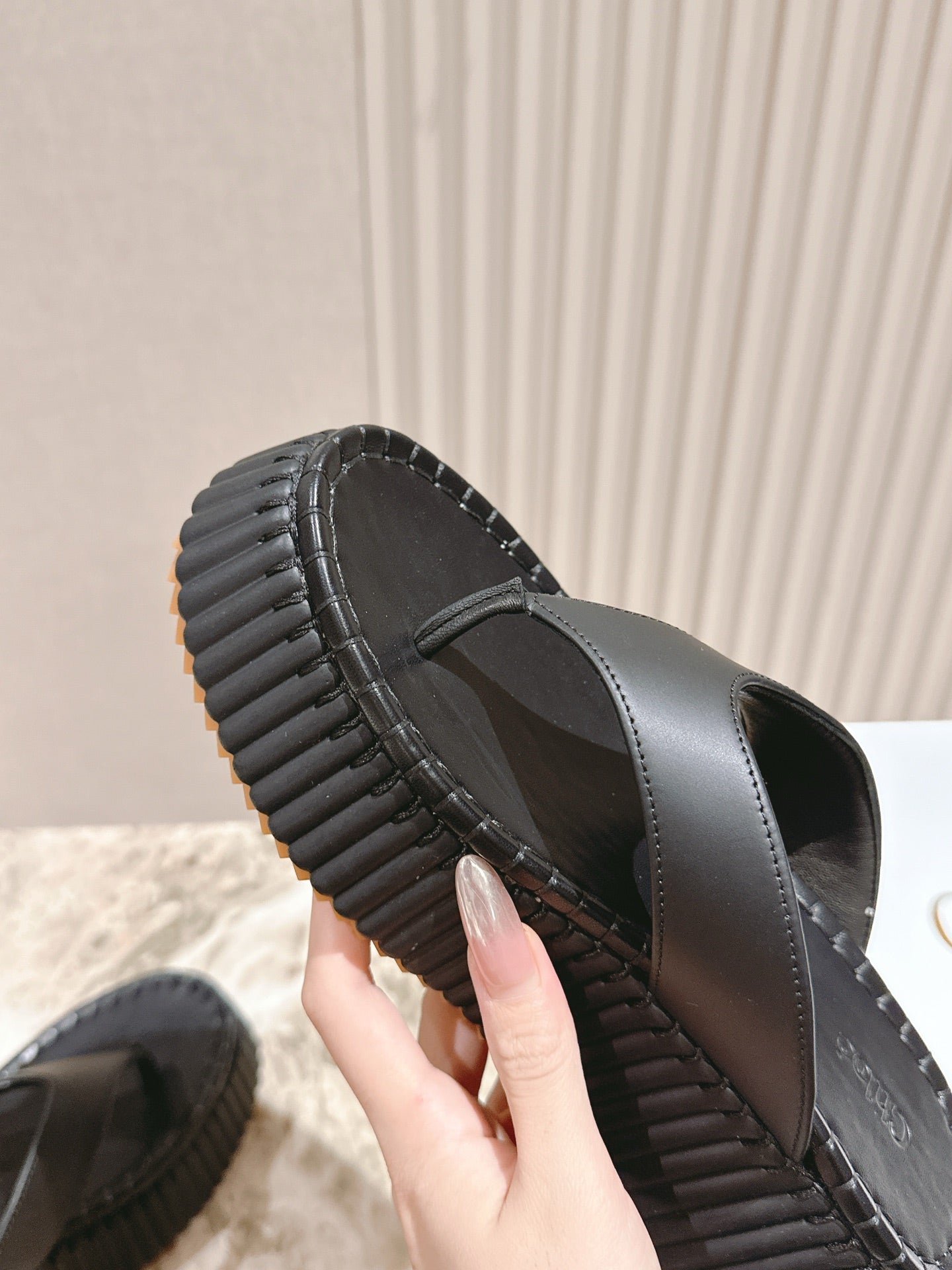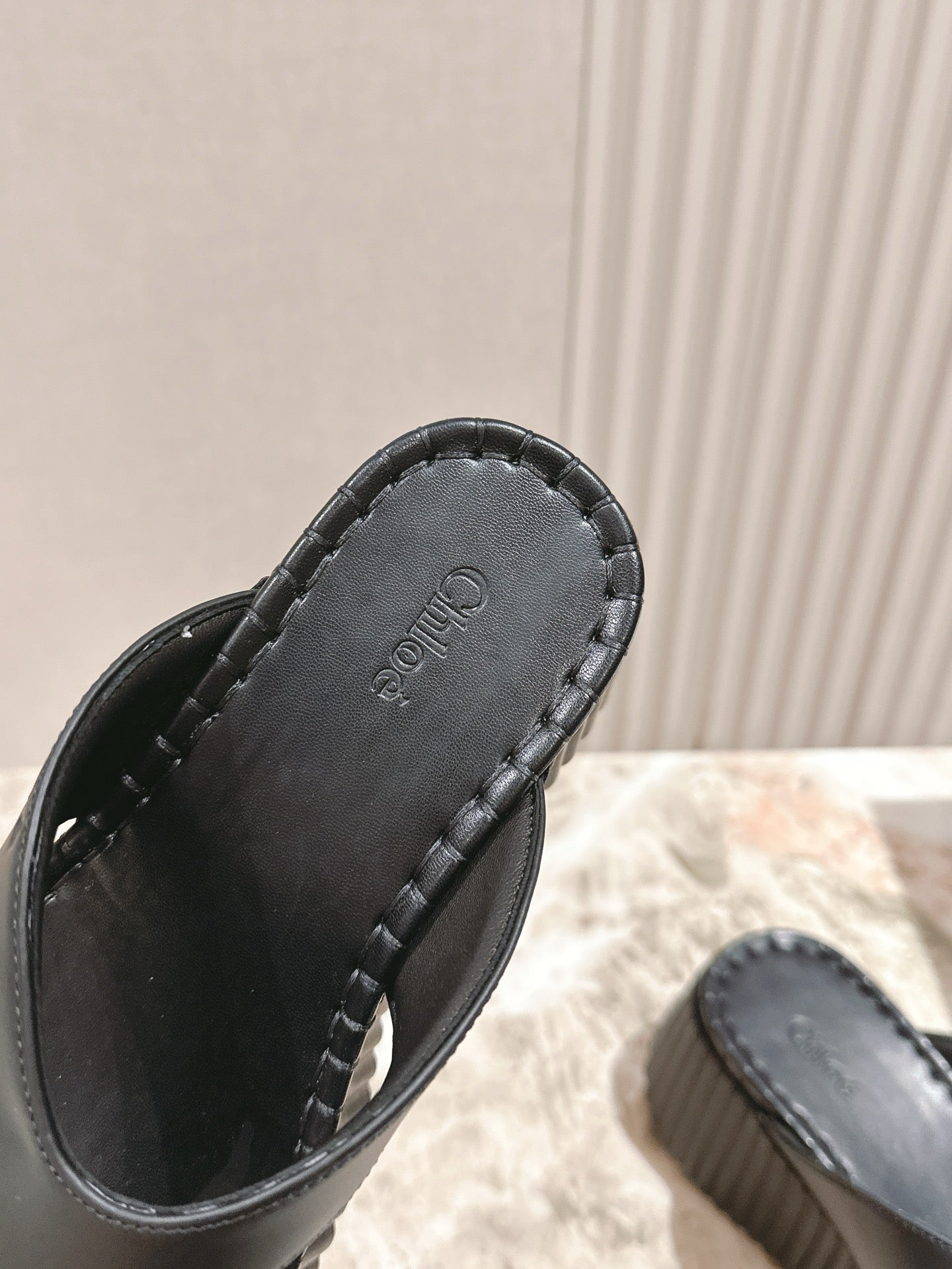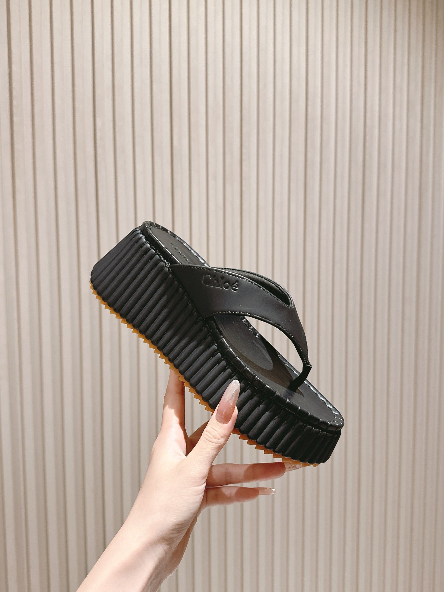 CHLOÉ 26S PLATFORM FLIP-FLOPS IN BLACK LAMBSKIN