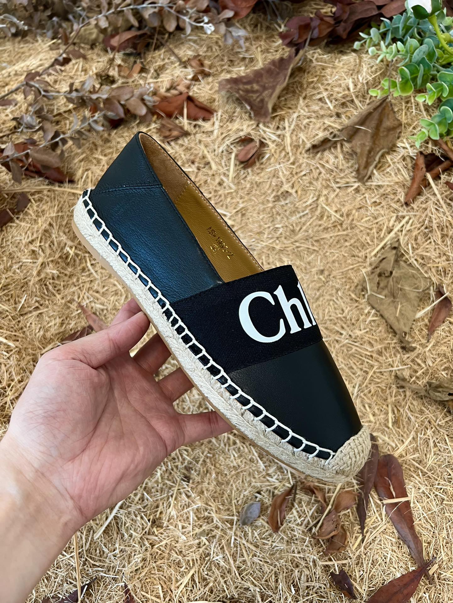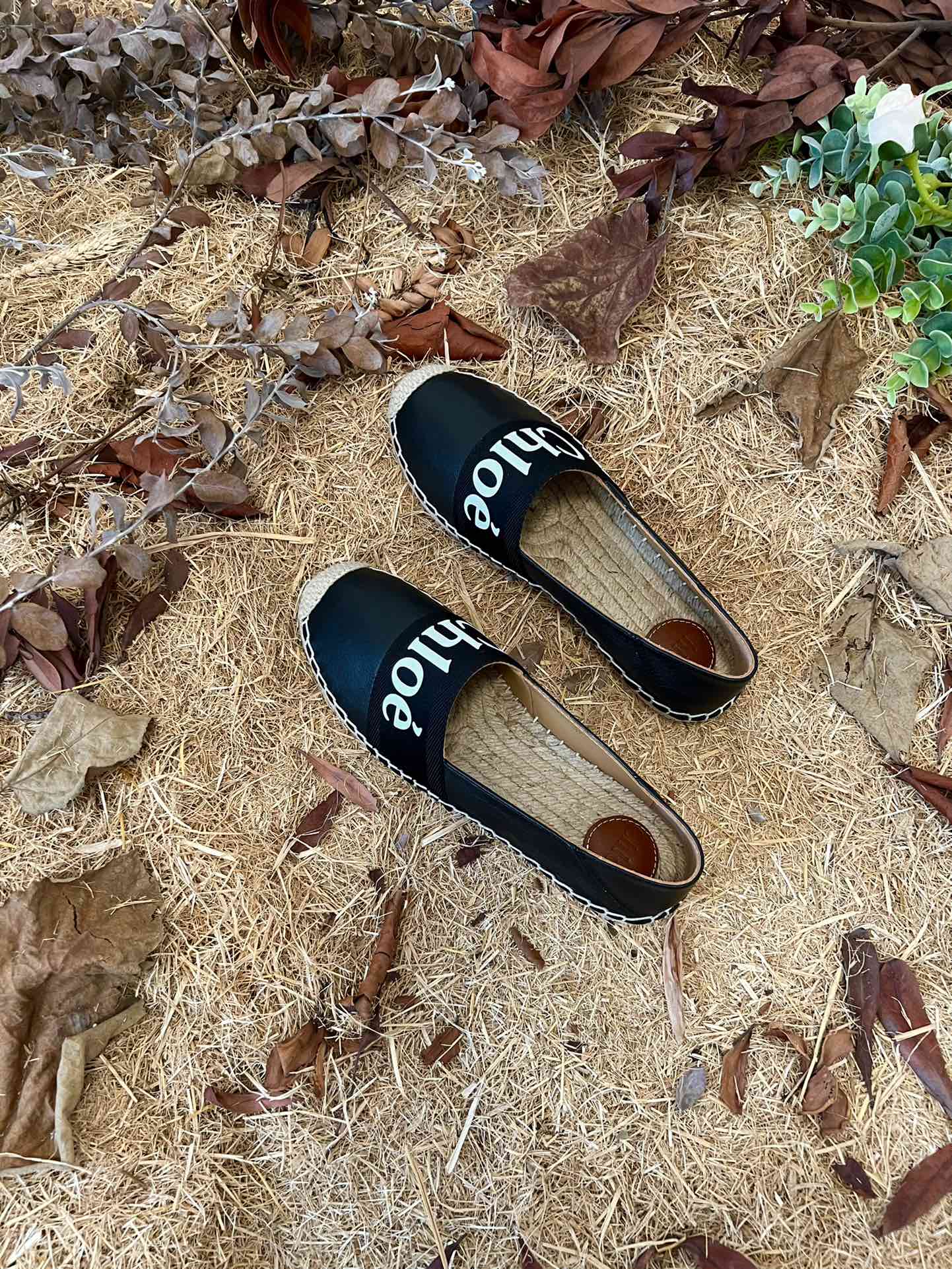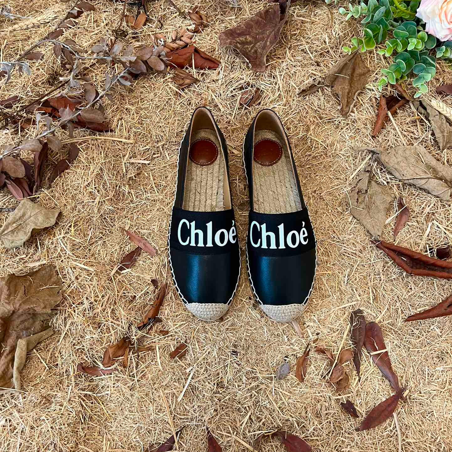 CHLOÉ 26S ESPADRILLE LOAFERS IN BLACK CALFSKIN AND CANVAS