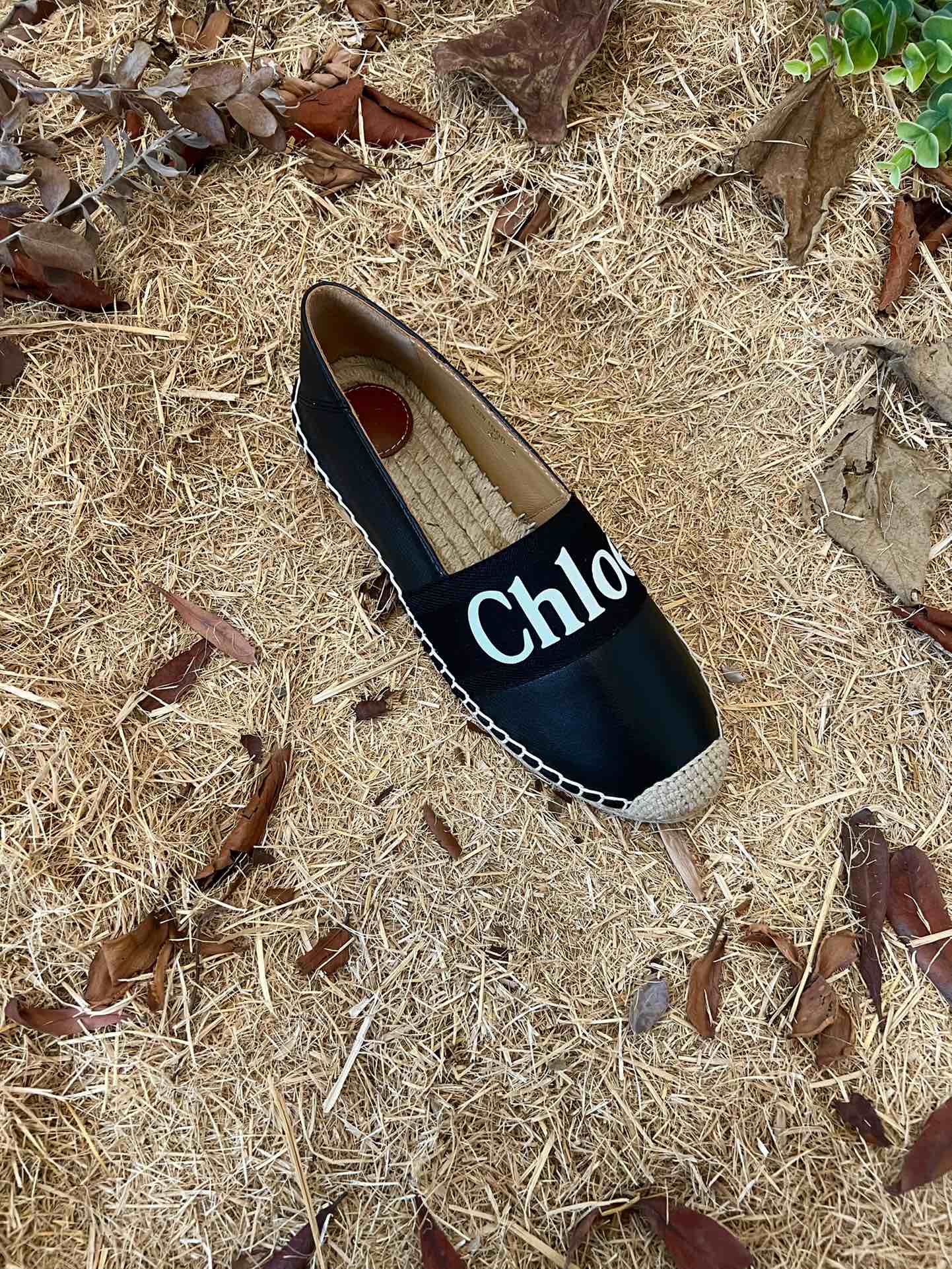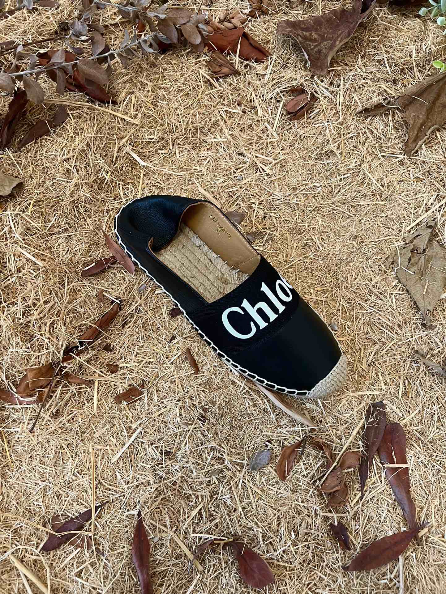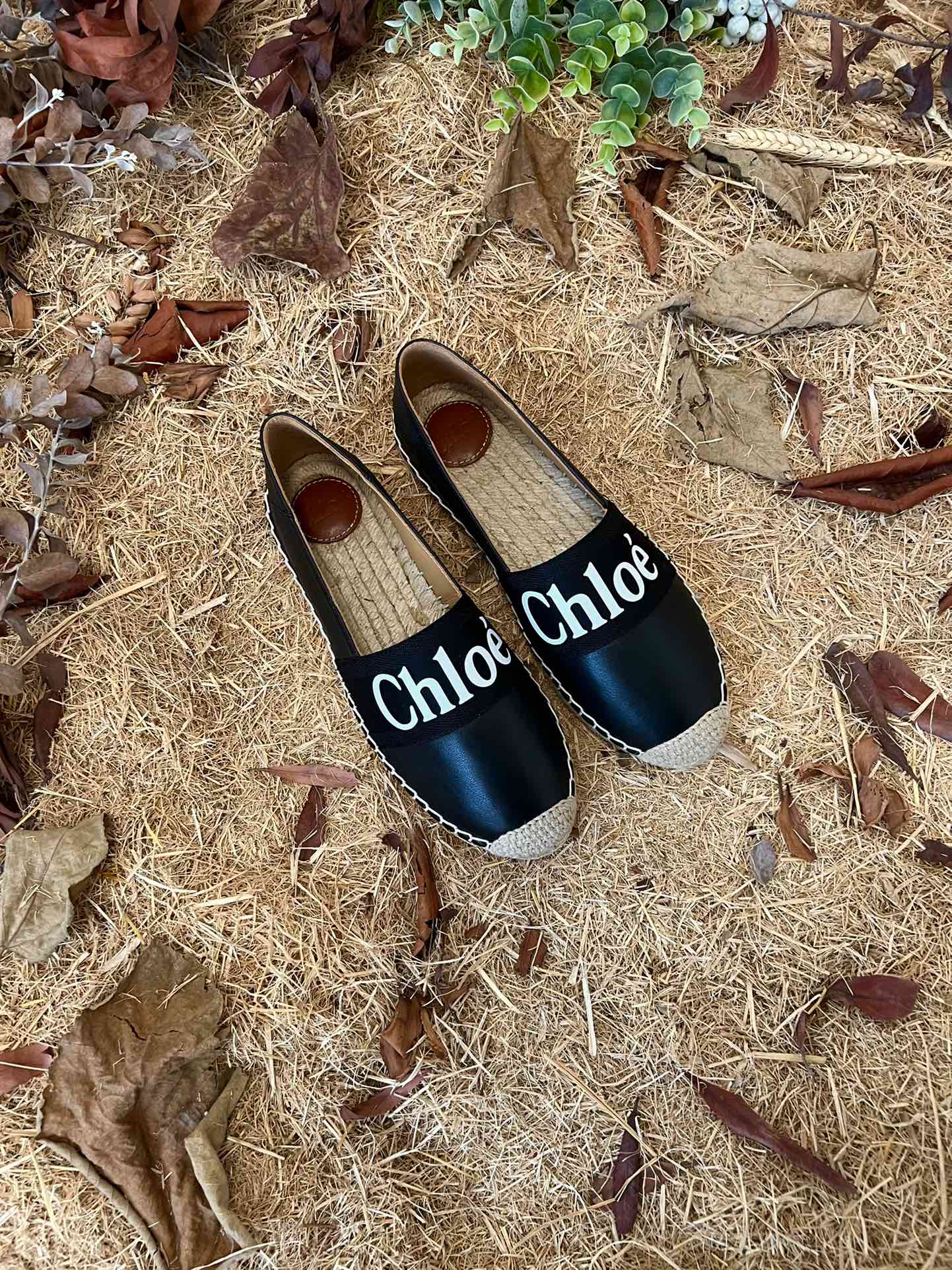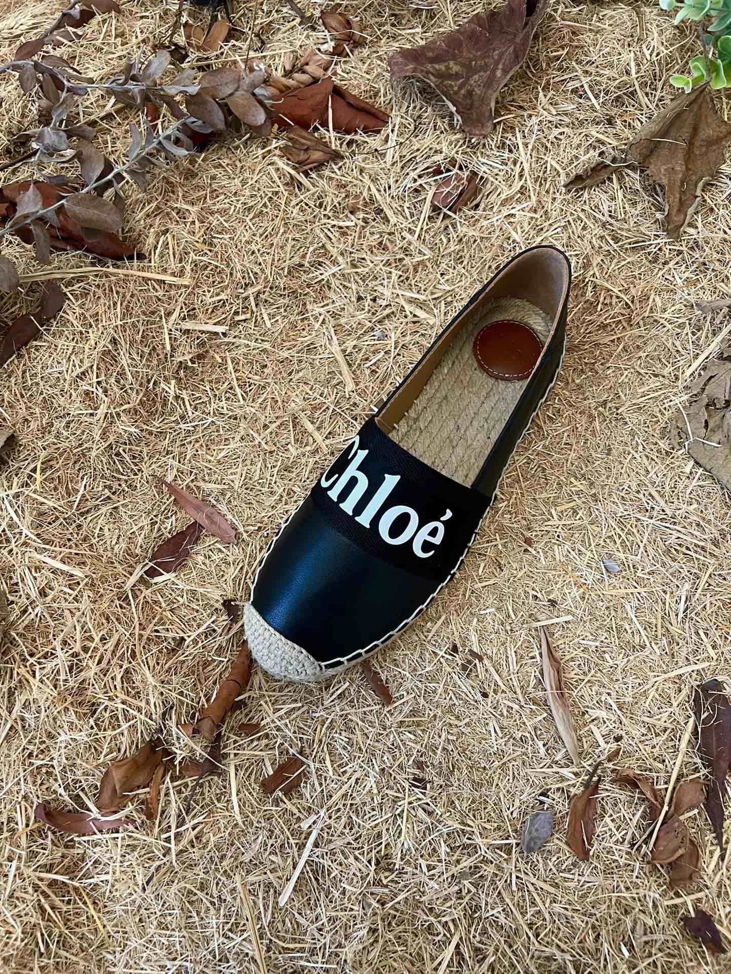 CHLOÉ 26S ESPADRILLE LOAFERS IN BLACK CALFSKIN AND CANVAS