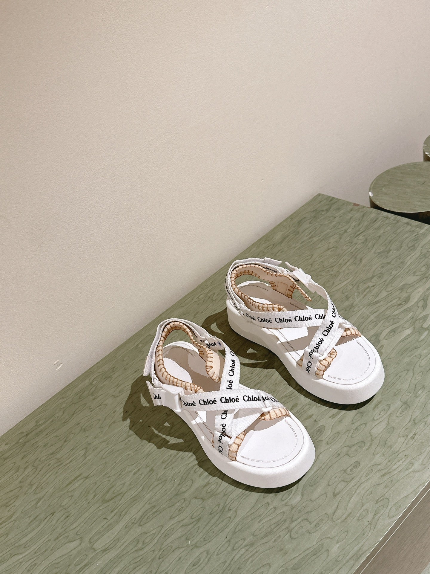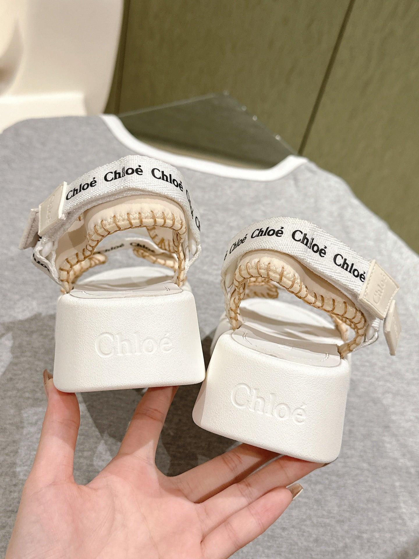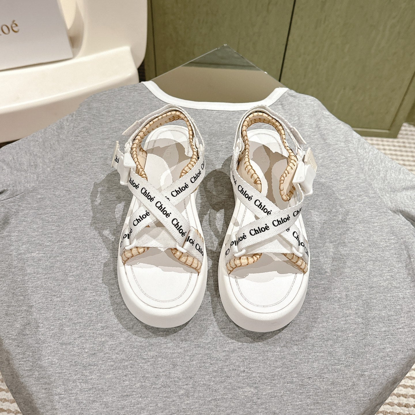 CHLOÉ 26S SANDALS IN WHITE LAMBSKIN AND CANVAS