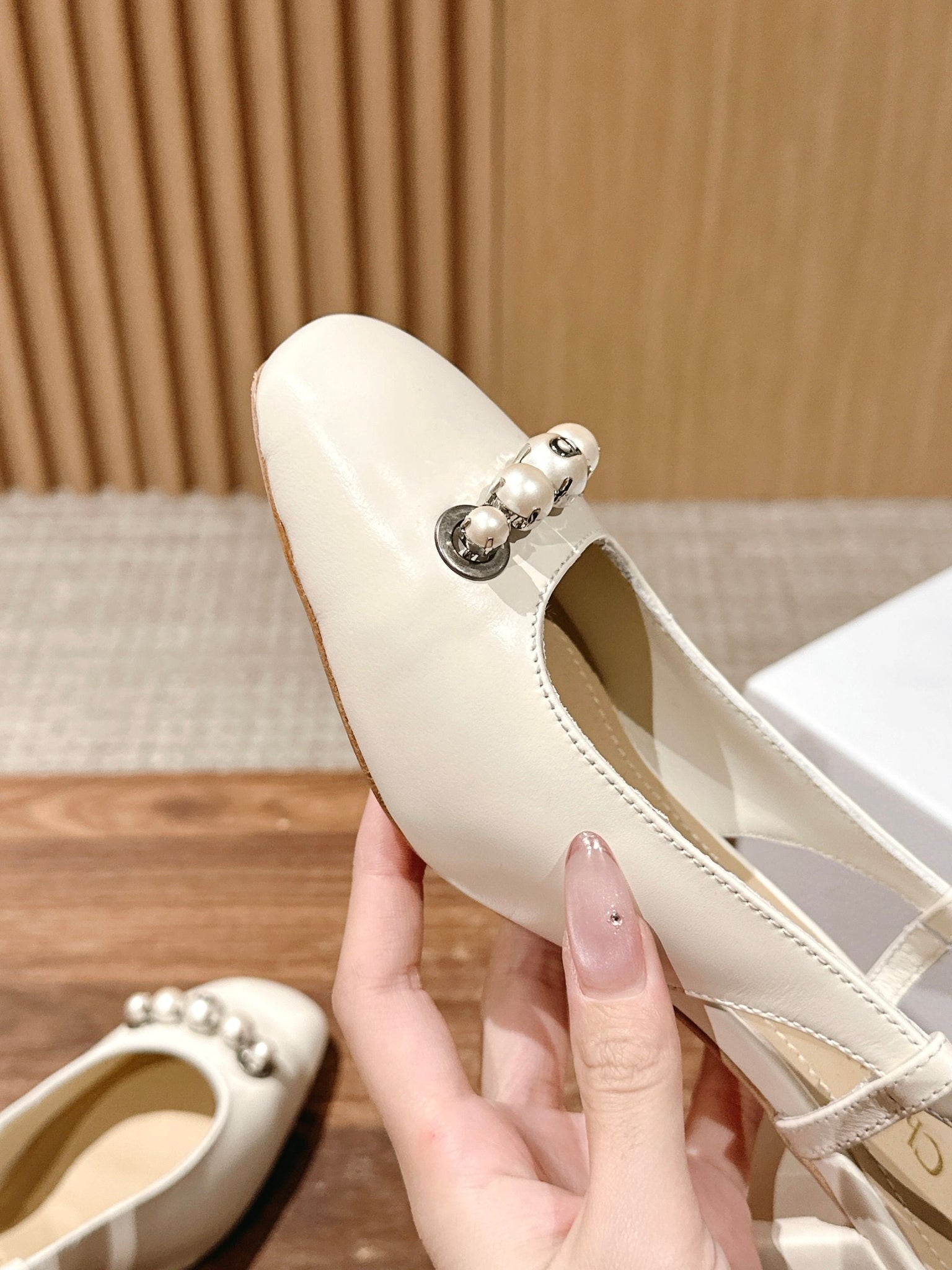 DIOR HIGH SLINGBACK 55 MM 25S IN CREAM WHITE LAMBSKIN PEARL DETAILING