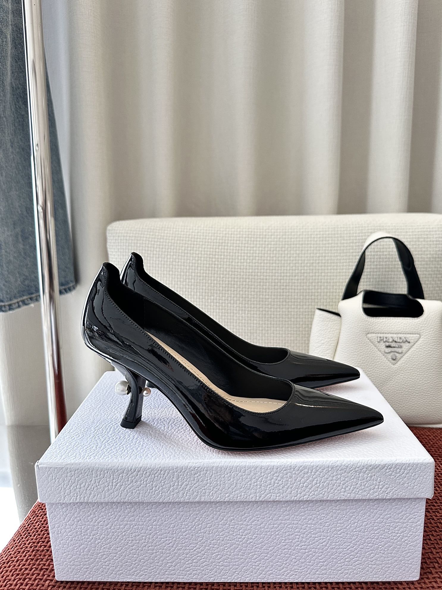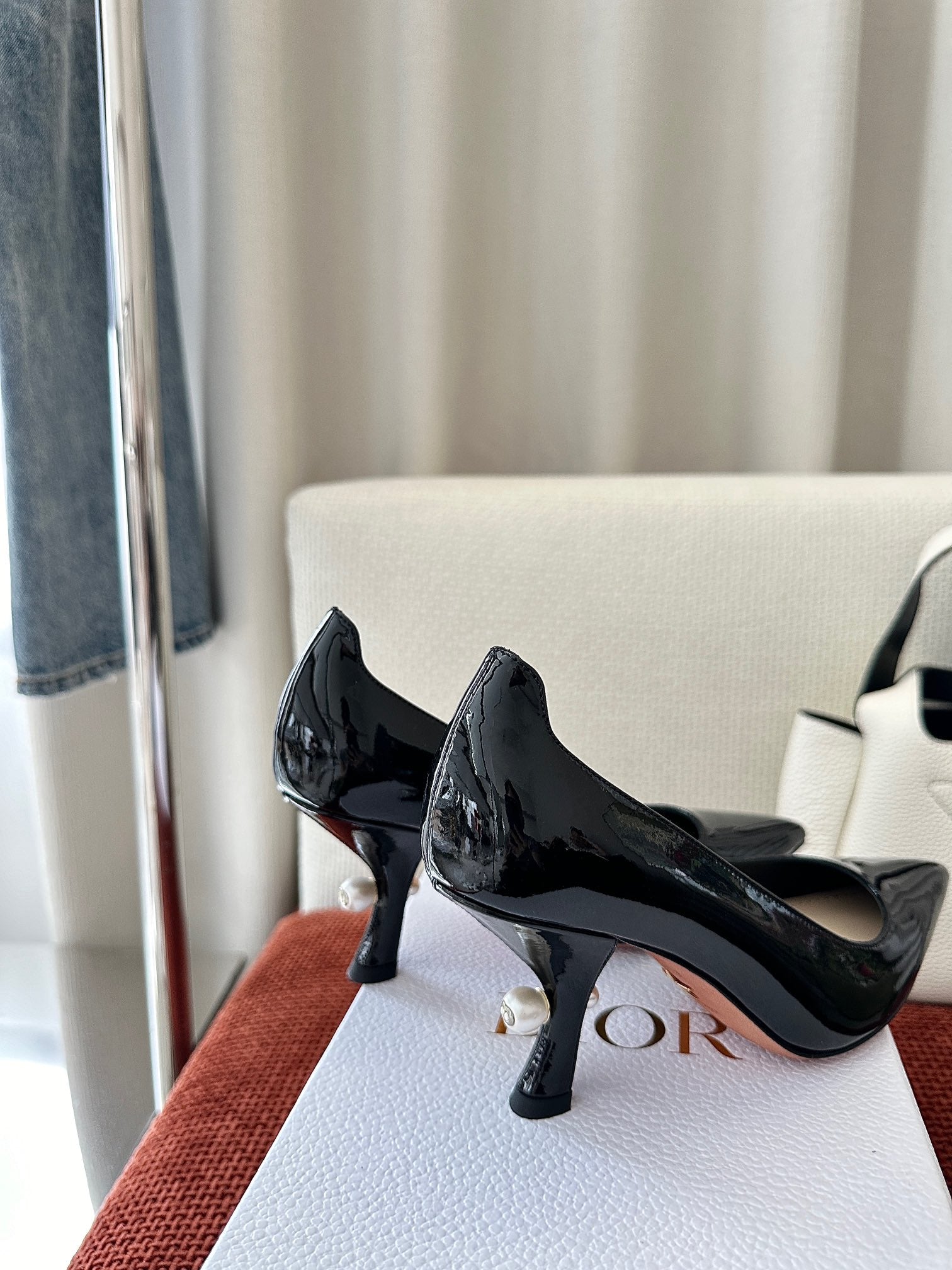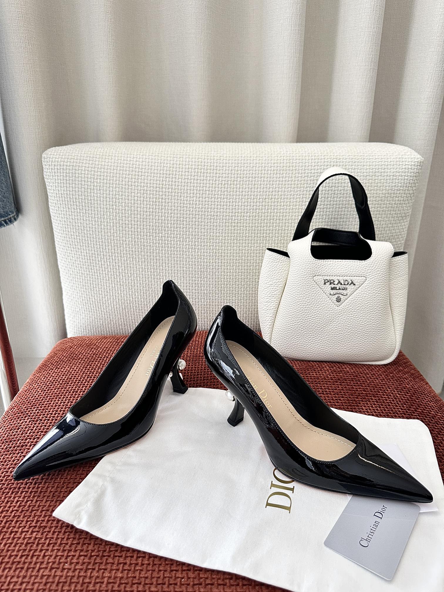 DIOR TRIBALES HIGH HEELS 80 MM 25S IN BLACK GLOSSY LEATHER
