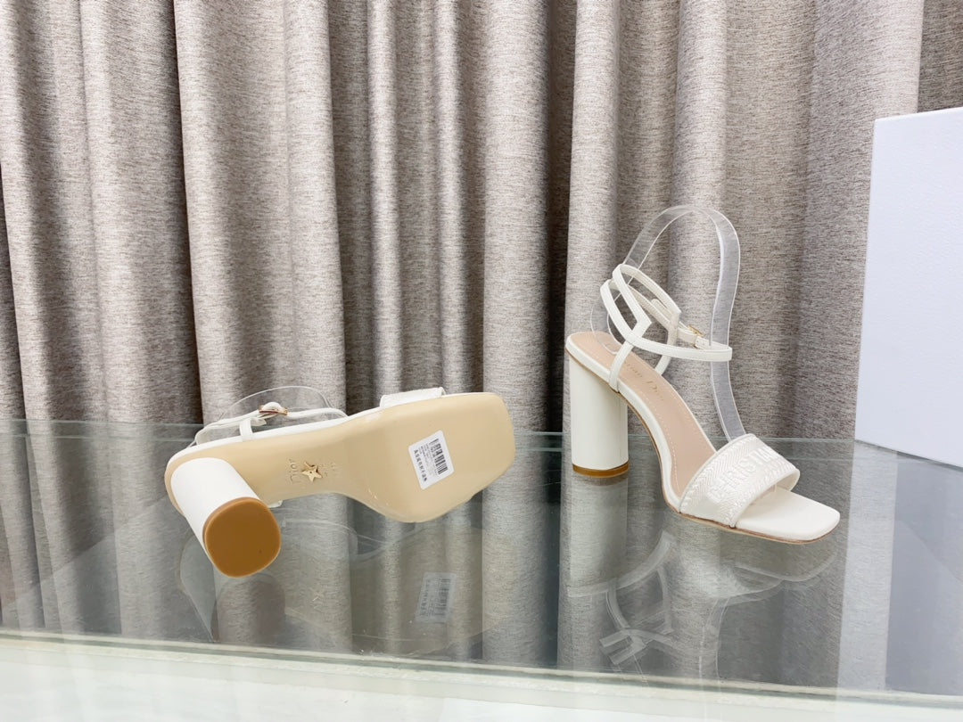 DWAY HIGH HEEL EMBROIDERED SANDAL WHITE CALFSKIN 95 MM
