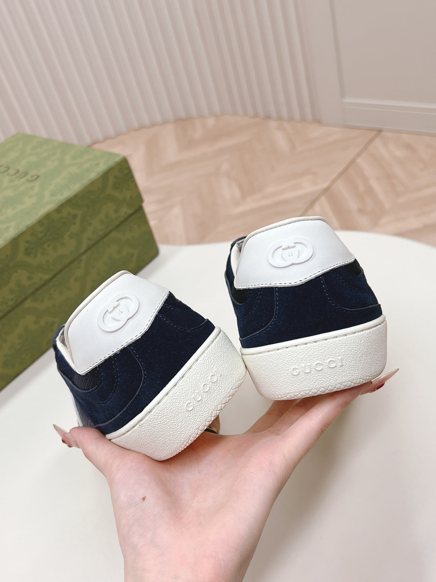 SNEAKER WITH INTERLOCKING G IN SPACE BLUE SUEDE AND MESH