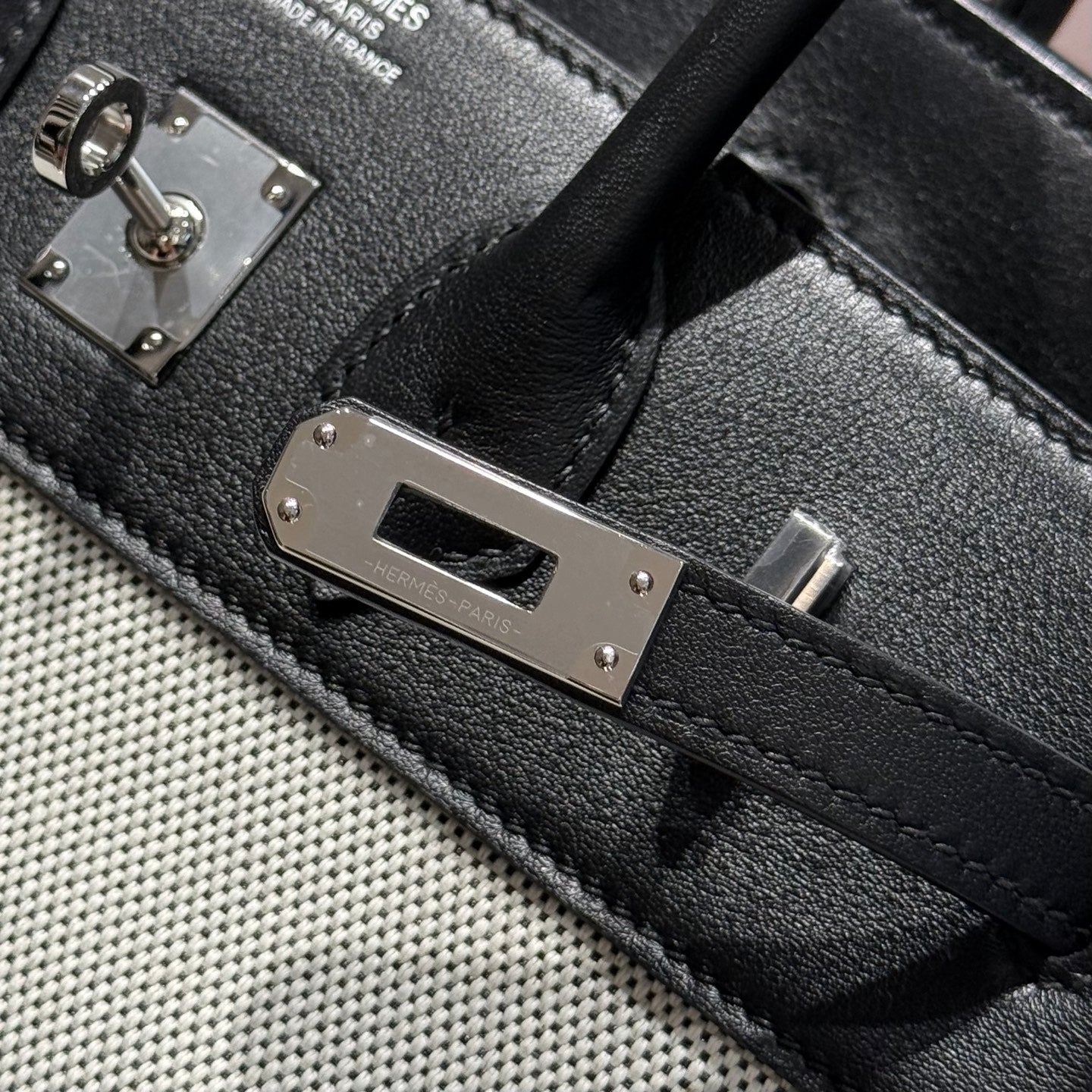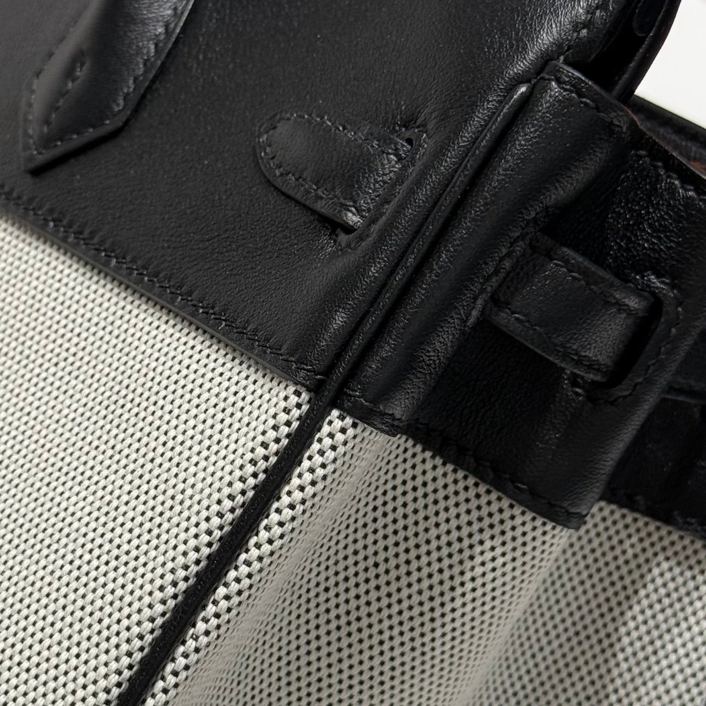 QUADRILLE BIRKIN 25CM IN BLACK SWIFT CALFSKIN WHITE TOILE CANVAS