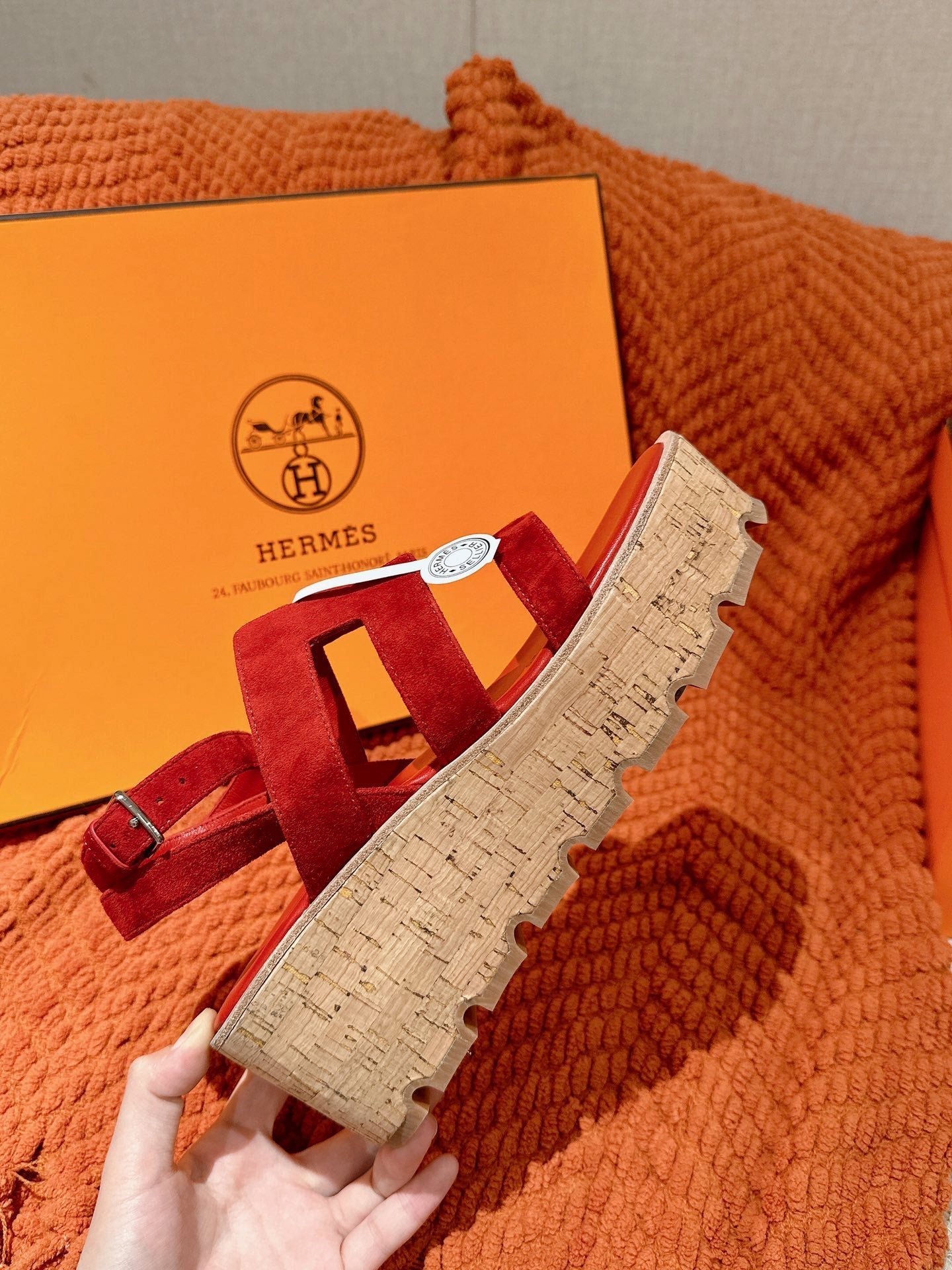 HM 25S HAVANE WEDGE SANDAL IN RED SUEDE