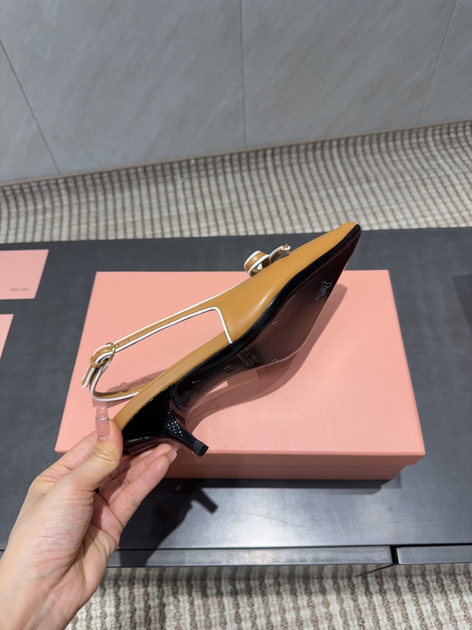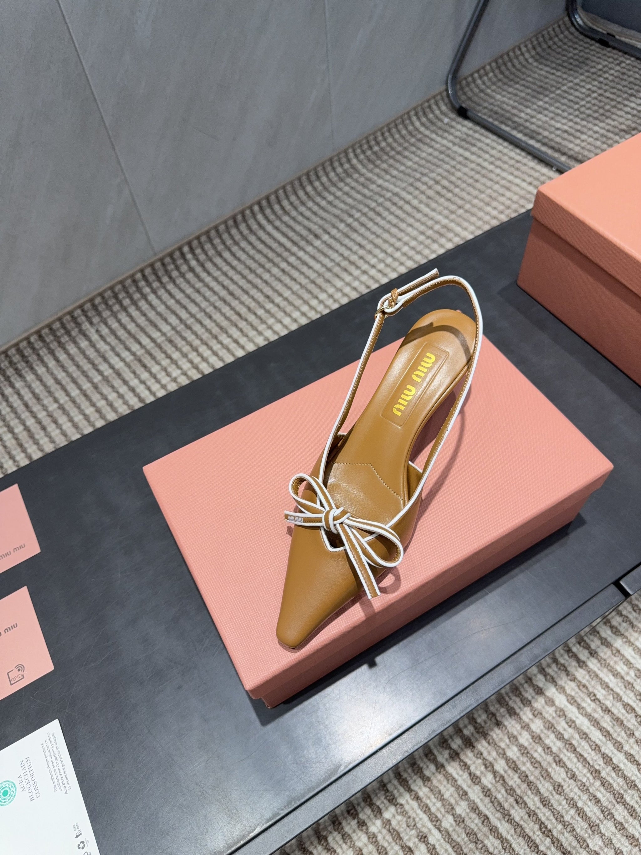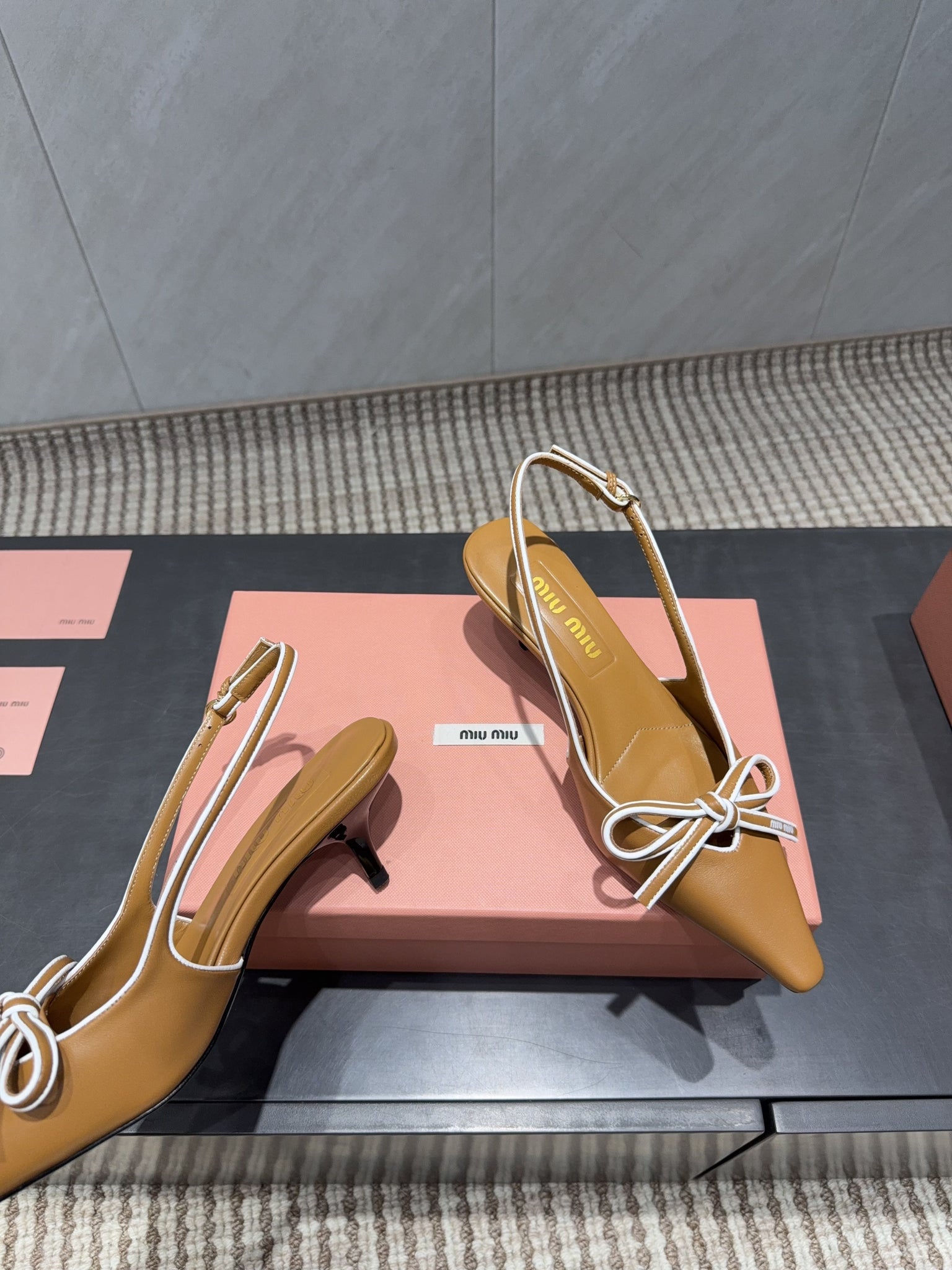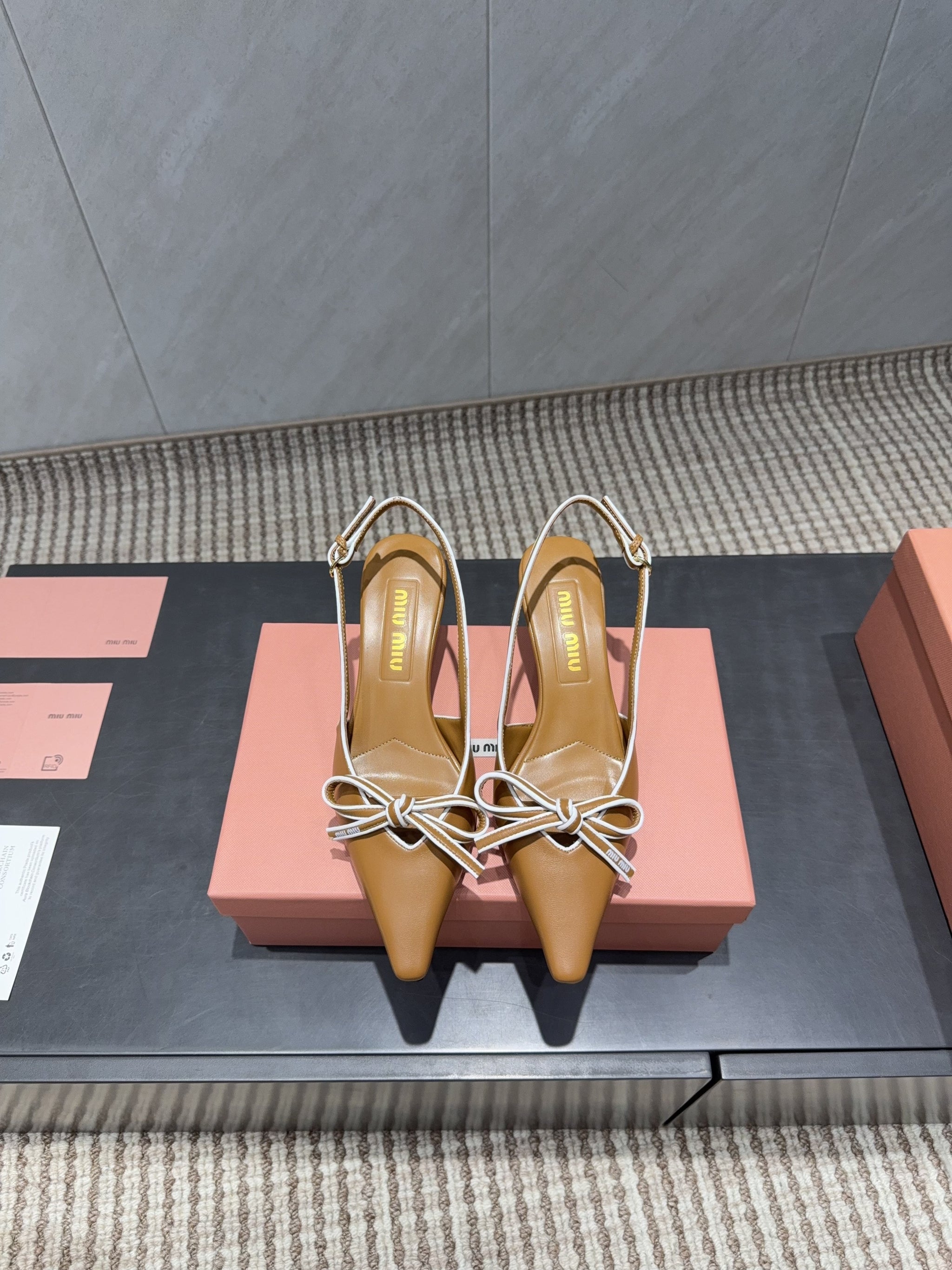 MIUMIU 26S SLINGBACK 55MM IN CARAMEL BROWN CALFSKIN WITH BOW