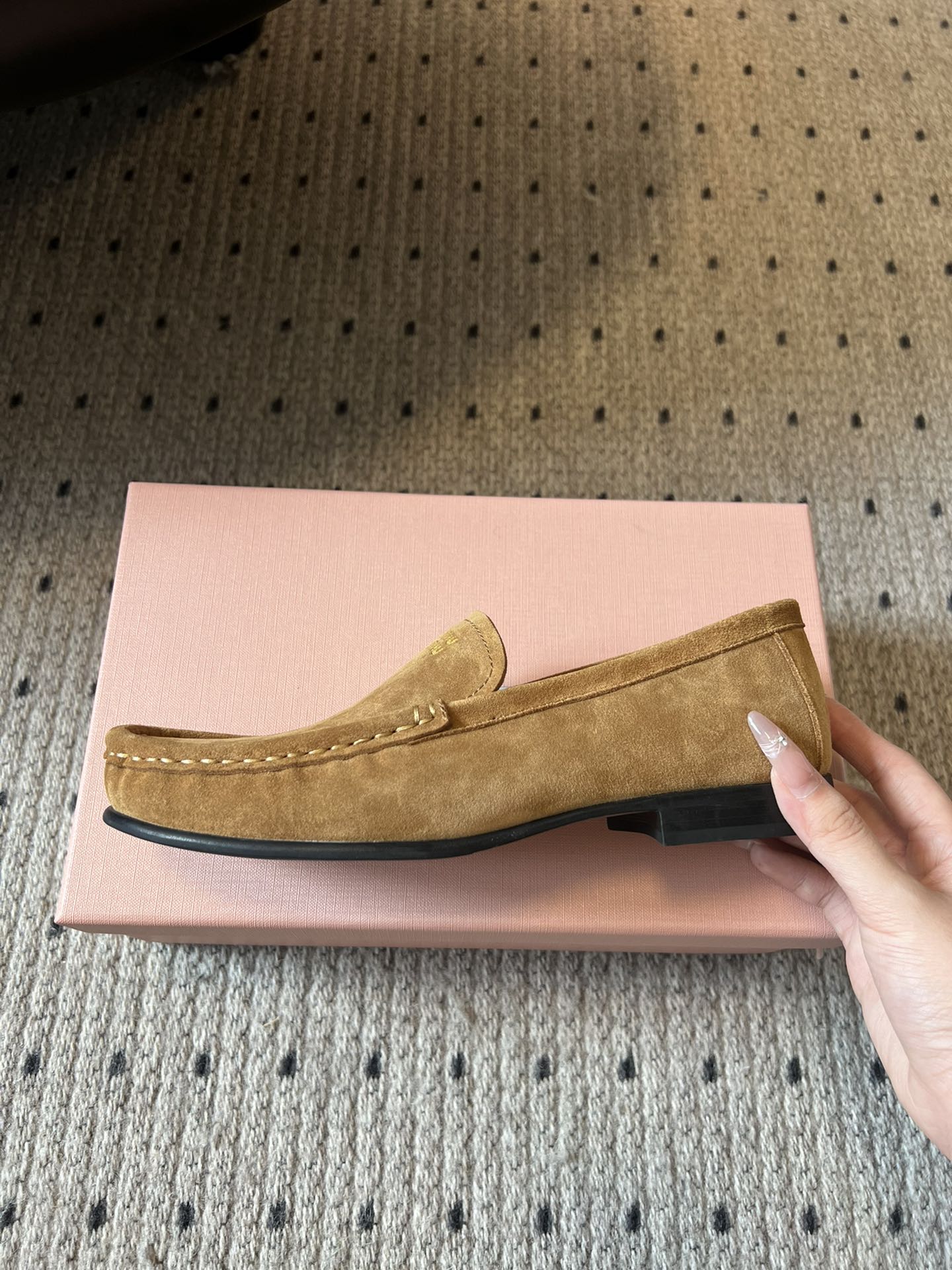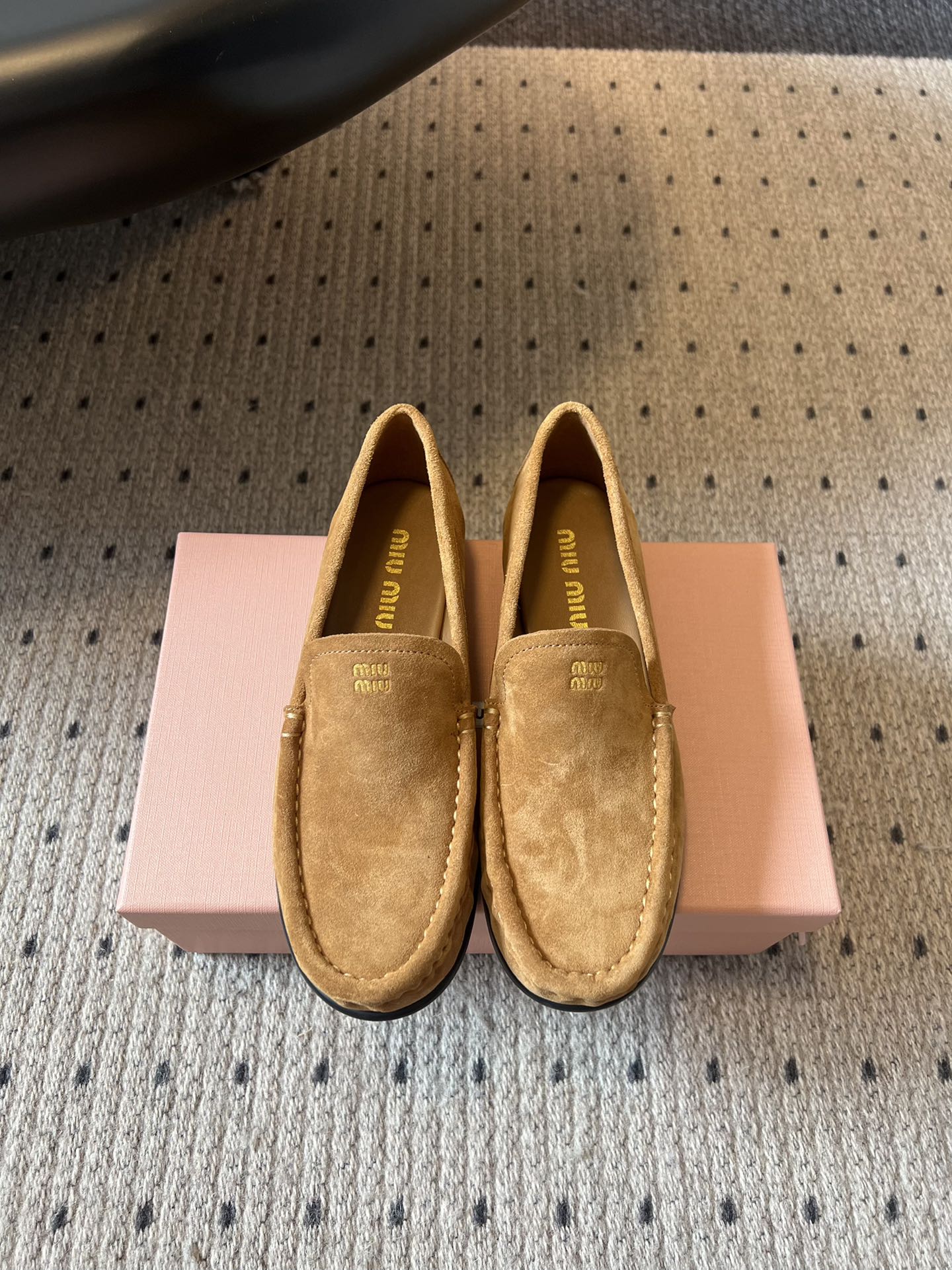 MIUMIU 26S LOAFERS IN TAN BROWN SUEDE