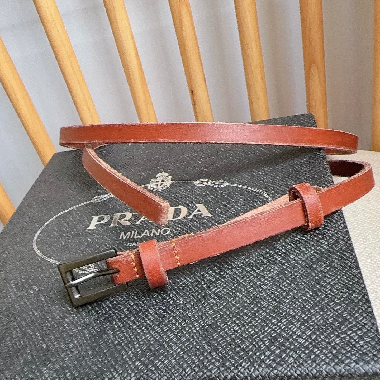 PRADA 25S BELT 10 MM IN REDDISH BROWN CALFSKIN 598368