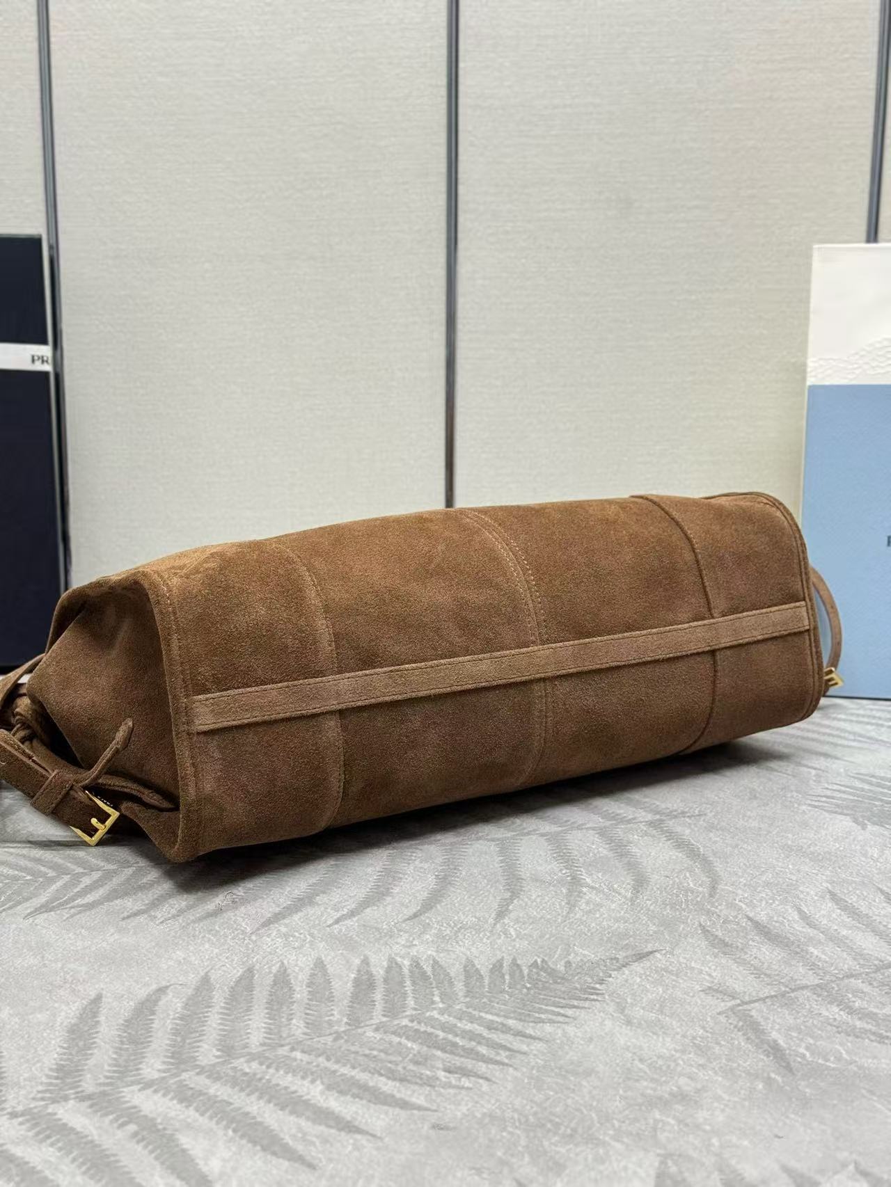 TOTE BAG WITH BELT 38 IN CHOCOLATE BROWN SUEDE GOLD HARDWARE