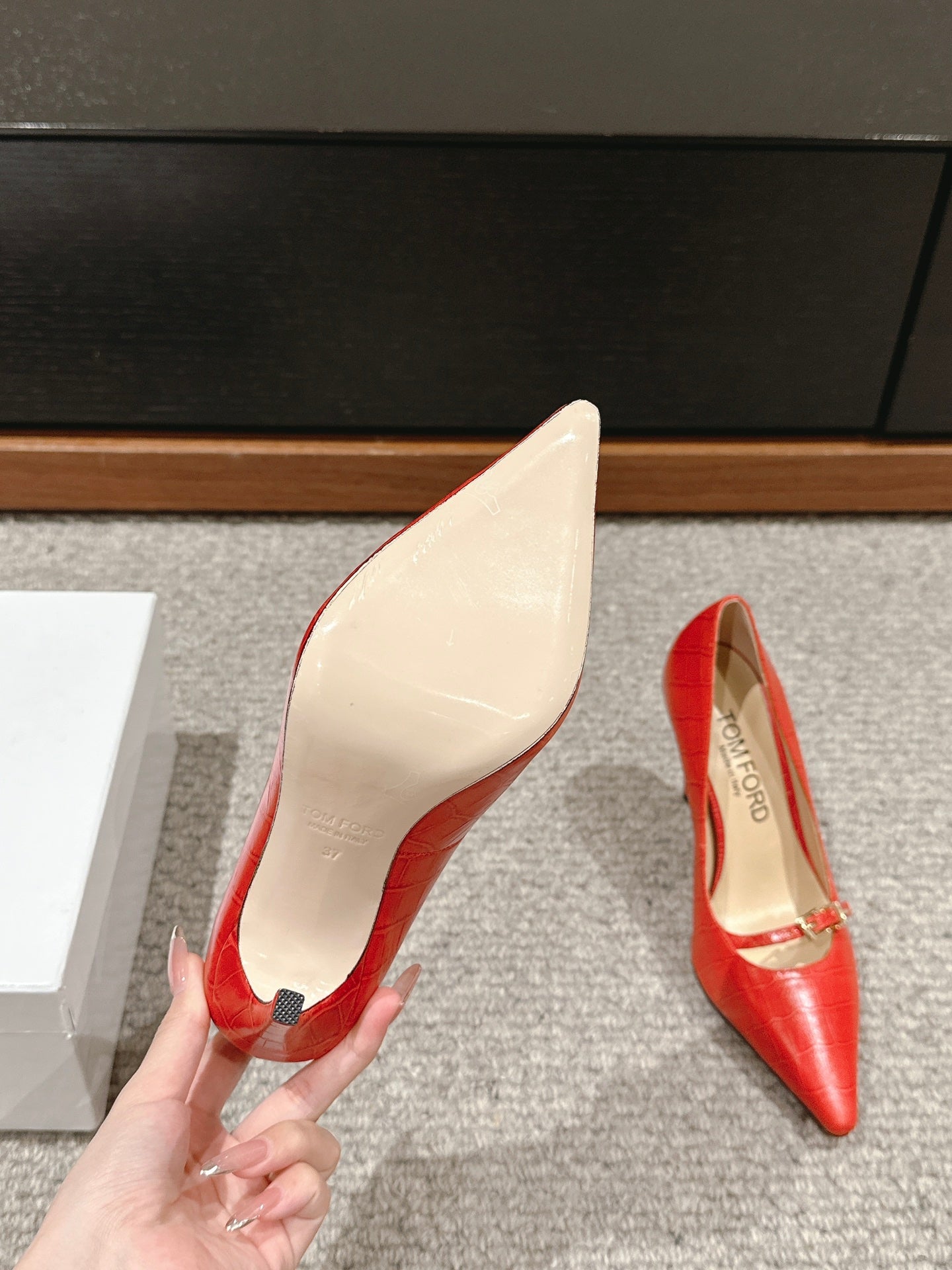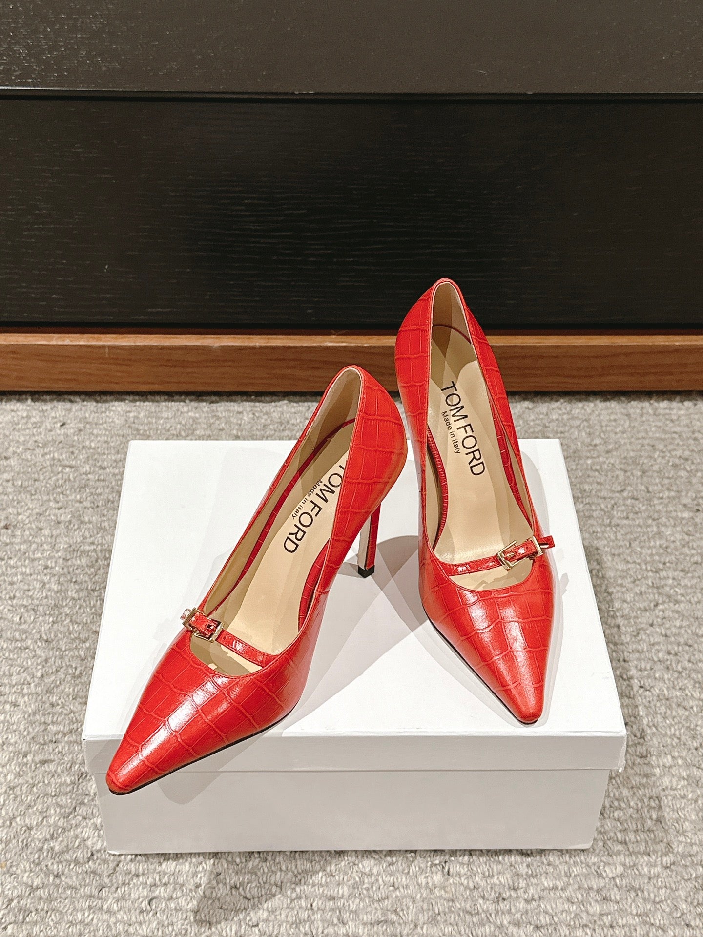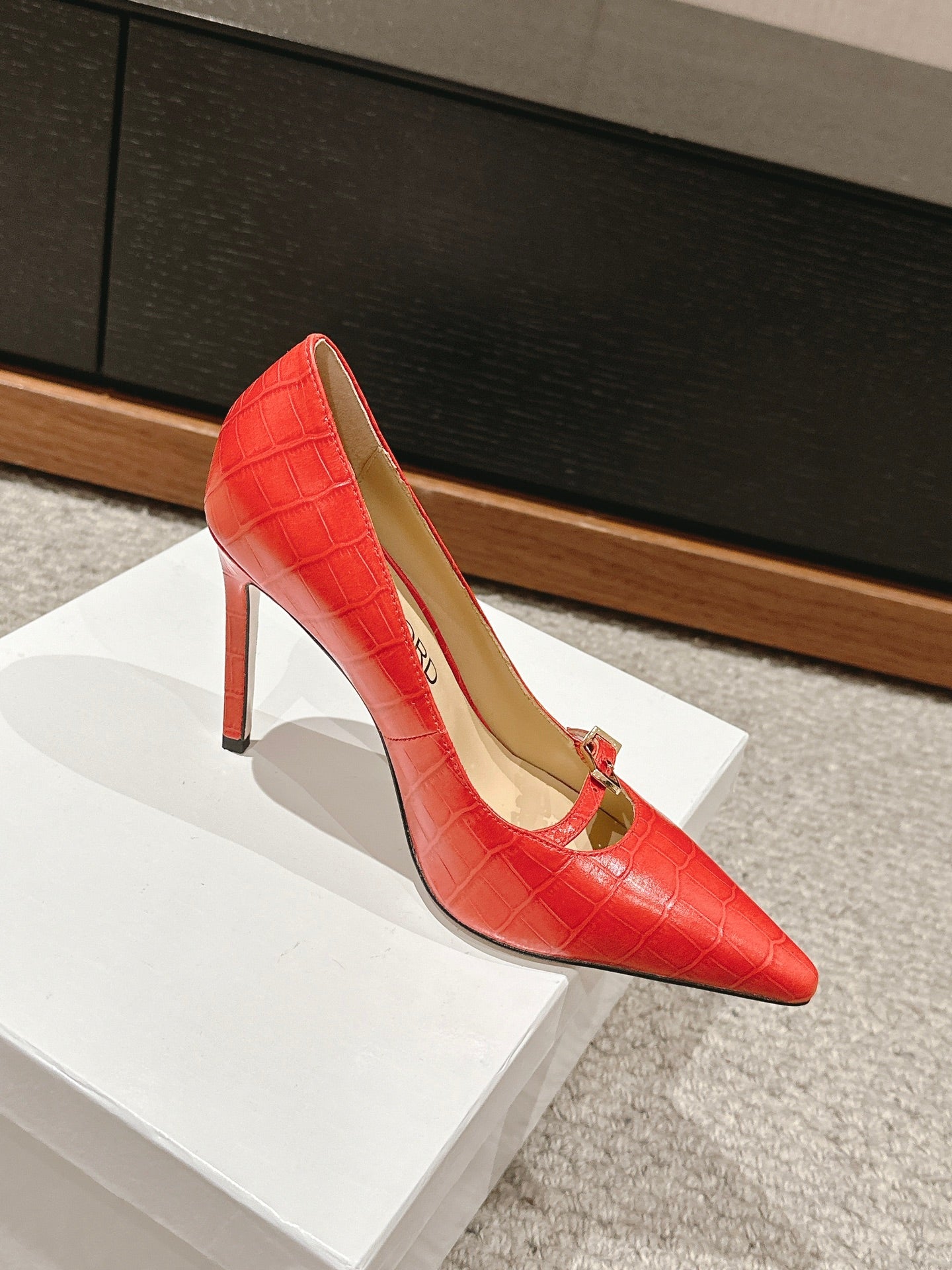HIGH HEEL 10 CM IN CHERRY RED CROCODILE LEATHER