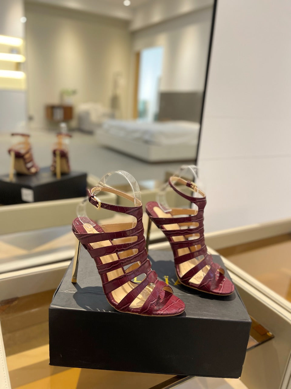 HIGH SANDAL 10 CM IN SANGRIA RED CALFSKIN
