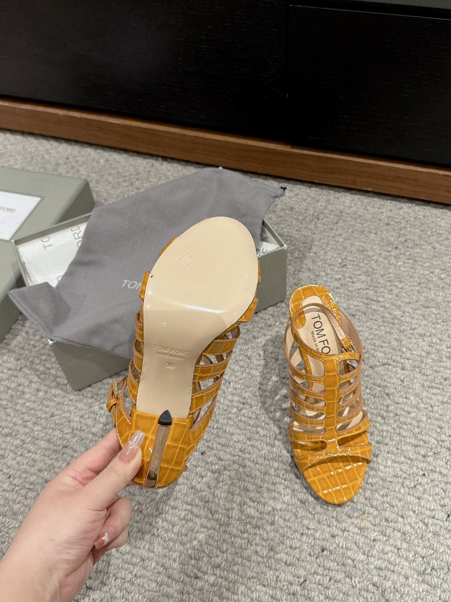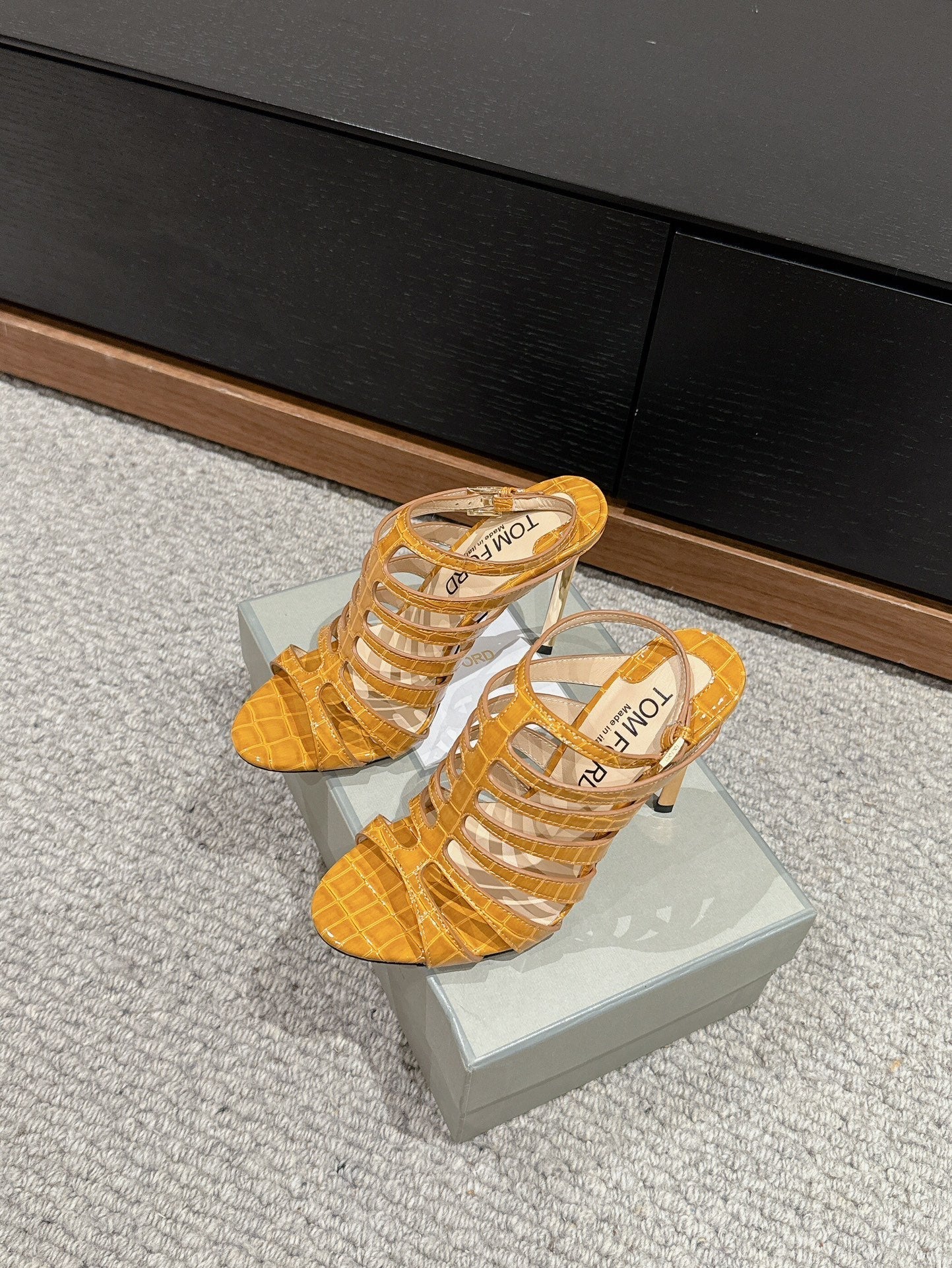 HIGH SANDAL 10 CM IN TIGER ORANGE CALFSKIN
