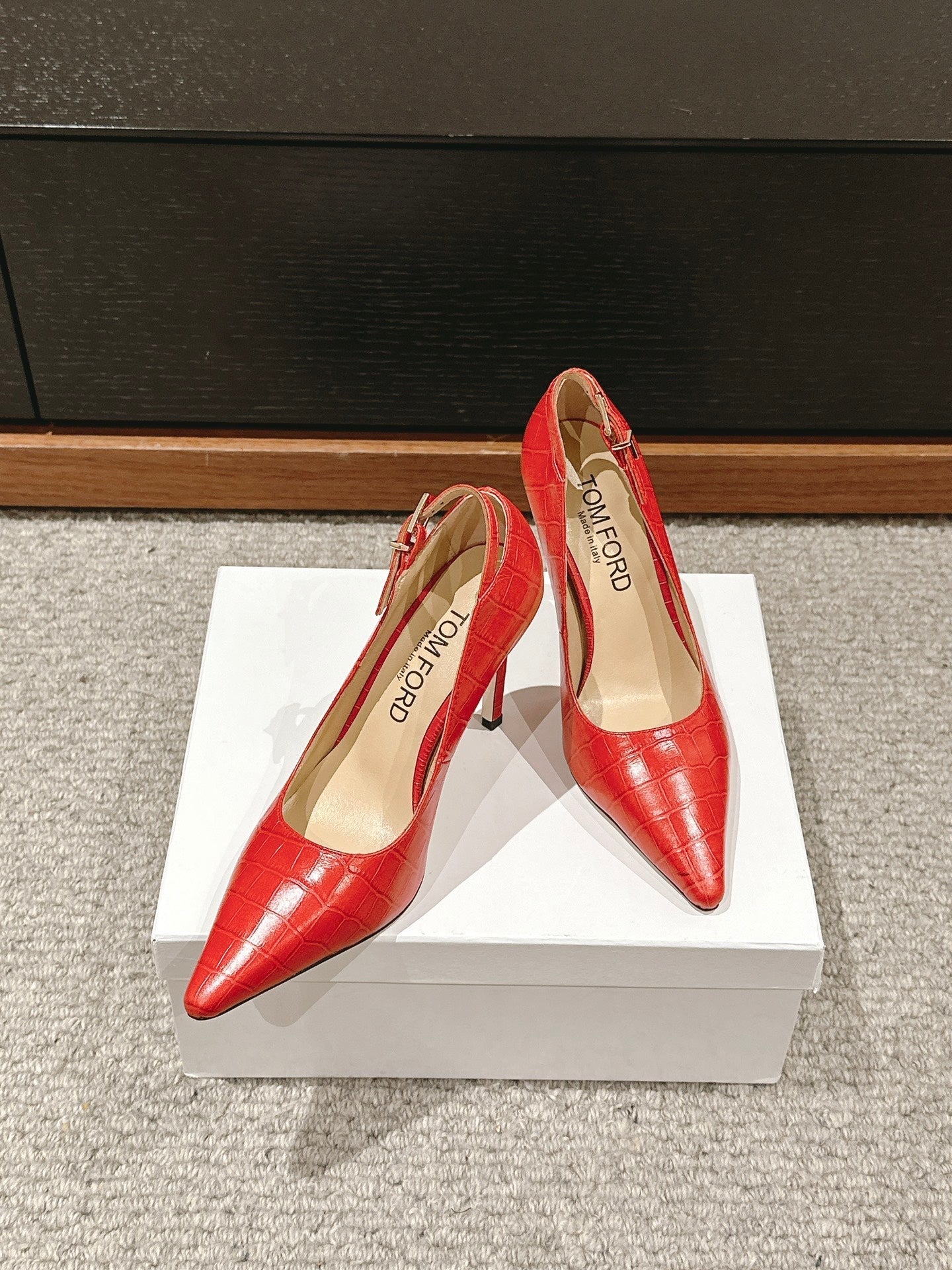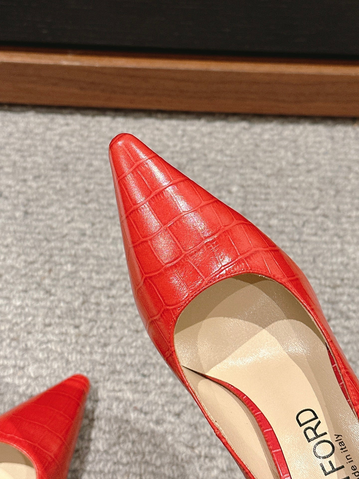STAMPED CROCODILE LEATHER ANGELINA PUMP CHERRY RED