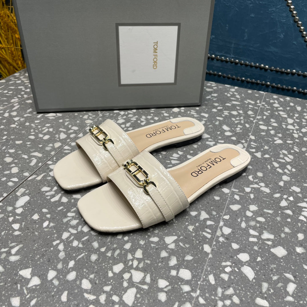 FLAT MULE IN WHITE CREAM CALFSKIN