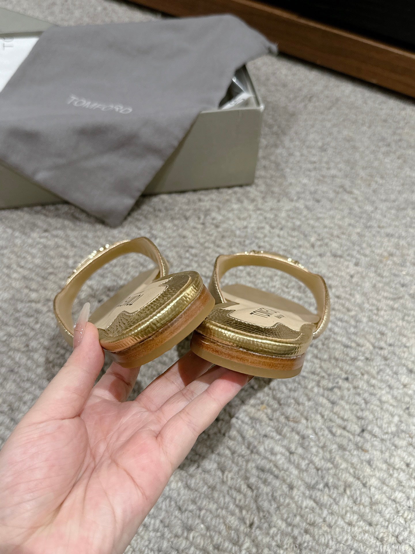 WHITNEY SLIDE IN GOLD CROCODILE LEATHER