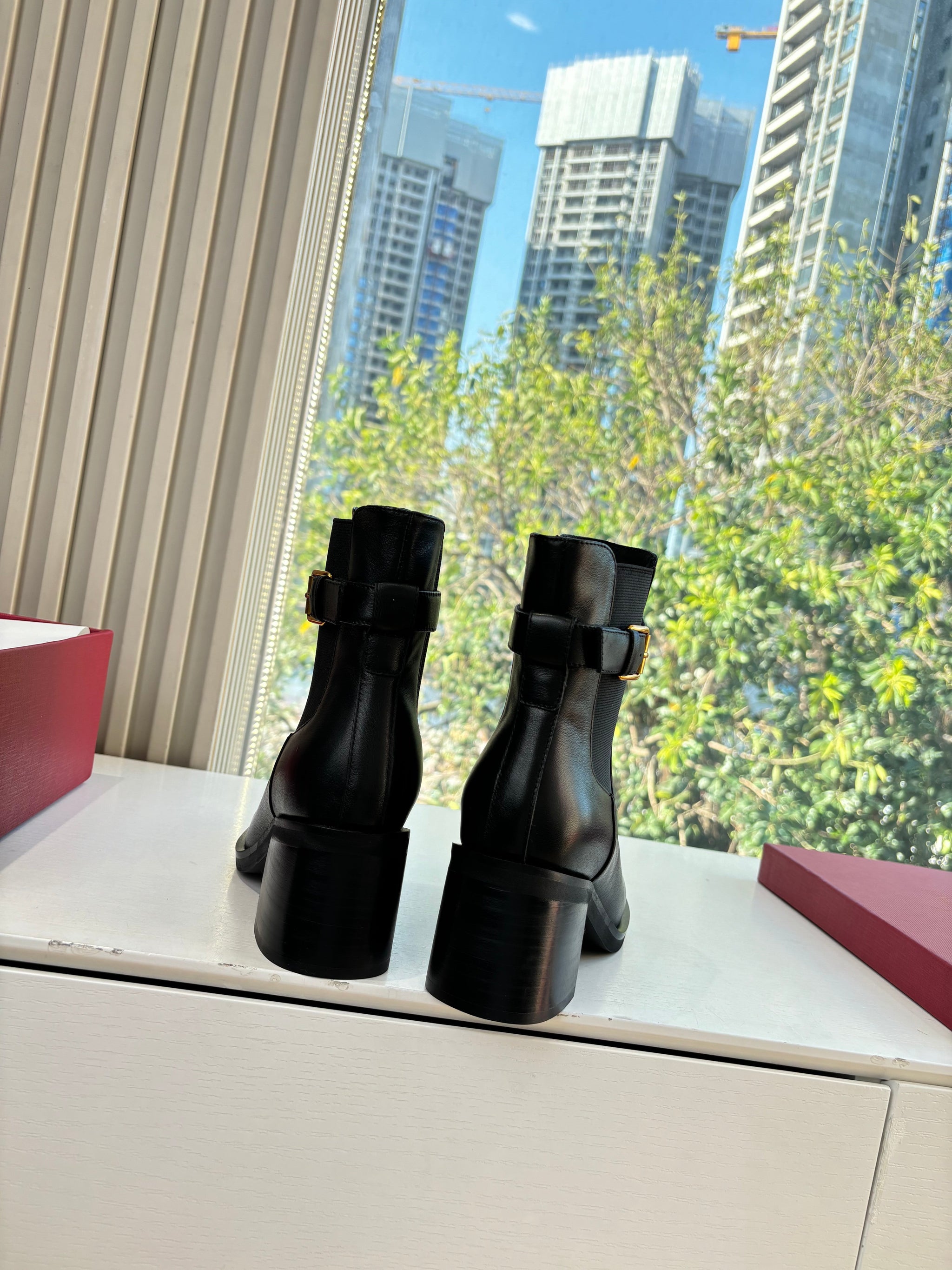 VALENTINO 25S SIGNATURE LOGO BOOTS 60 MM IN BLACK CALFSKIN WITH GOLD HARDWARE
