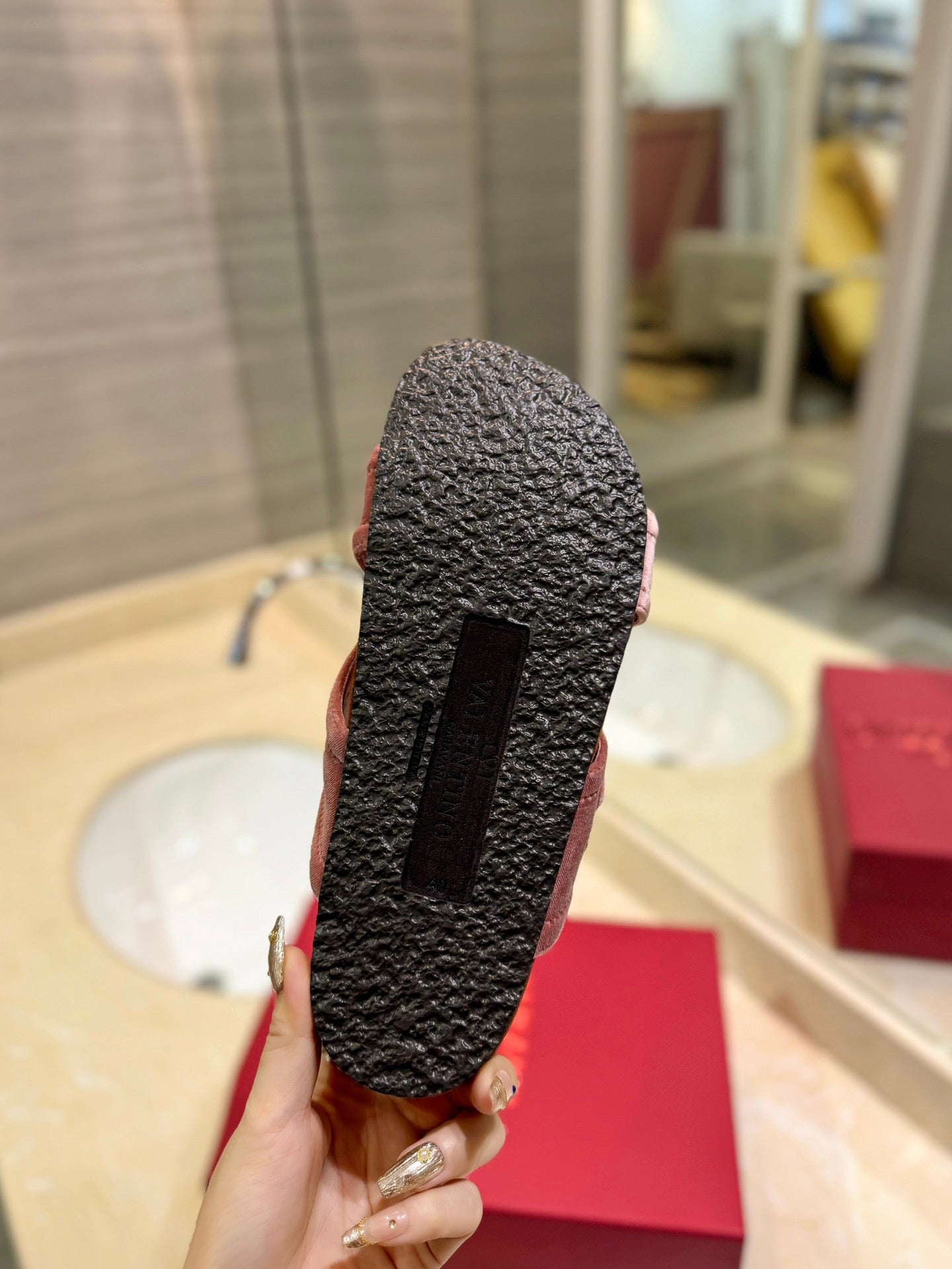 FUSSFRIEND CREPE PINK SILK VELVET SLIDE SANDALS