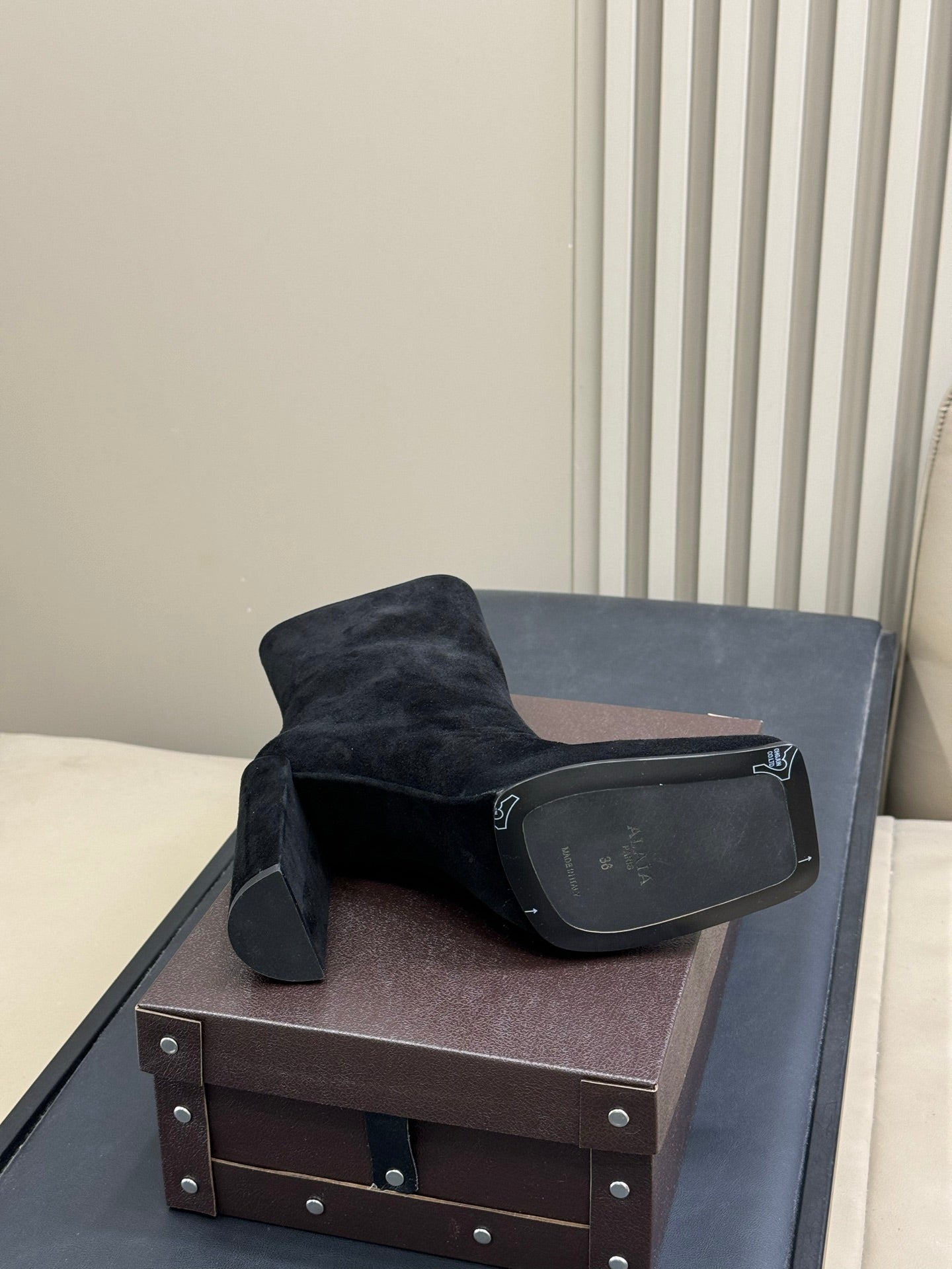 ALAIA 25S ANKLE HIGH-HEELED BOOTS IN BLACK SUEDE
